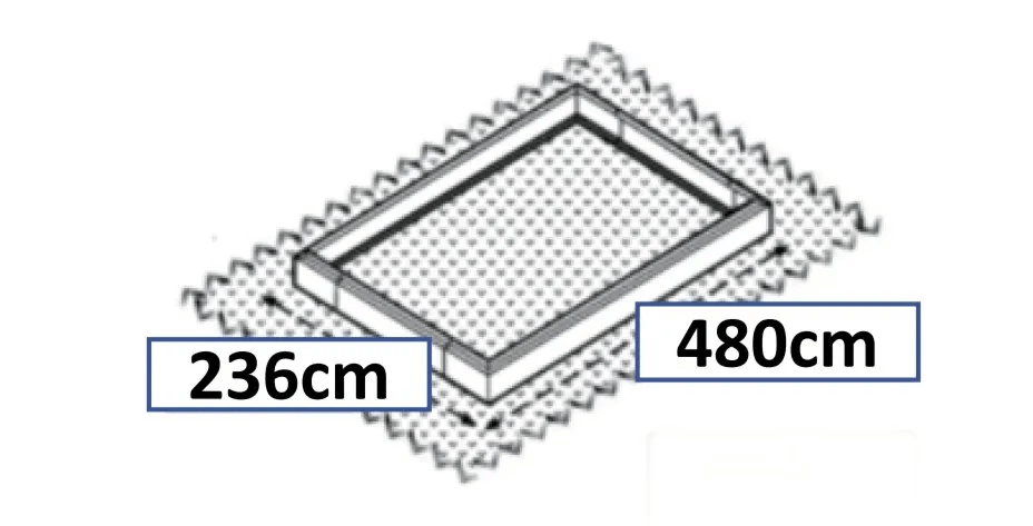 - Głebokość całkowita (z rynnami): 490cm