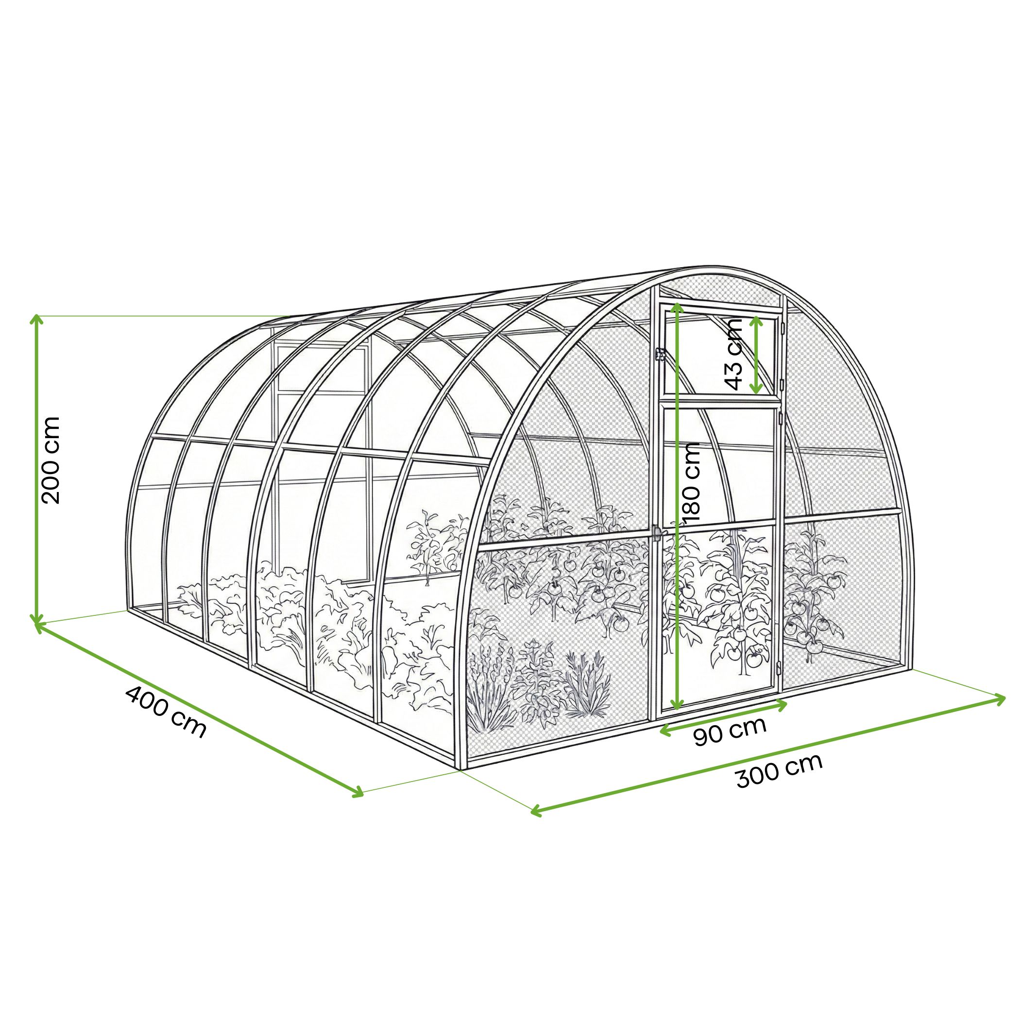 Wysokość szklarni: 2 m