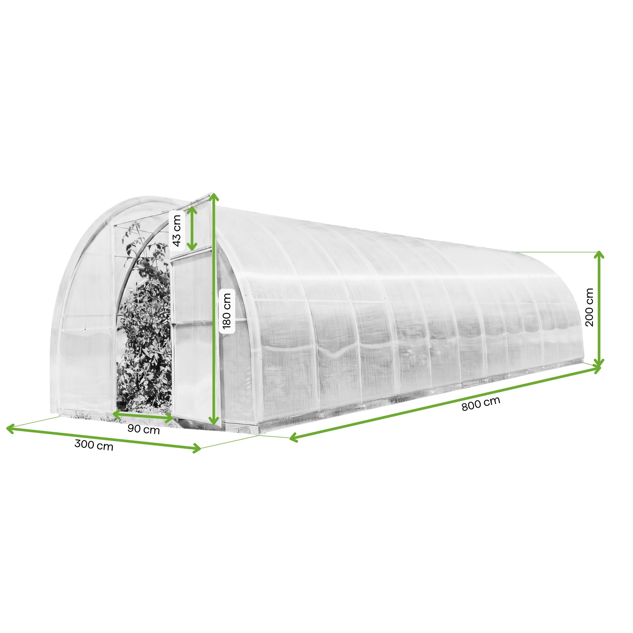 Szklarnia ogrodowa poliwęglanowa 4 mm CEPRA 3 x 8 m - Cultivo to idealny wybór dla ogrodników planujących uprawy sezonowe. Przestronna szklarnia w kształcie tunelu o szerokości 3 m i wysokości 2 m. zapewnia komfortową pracę i maksymalne wykorzystanie powierzchni. Klucz do wyjątkowej stabilności leży w wzmocnionym profilu 40x20 mm ze stali ocynkowanej ogniowo, który skutecznie chroni konstrukcję przed śniegiem i wiatrem. Wysokiej klasy poliwęglan gwarantuje optymalne warunki świetlne i idealny mikroklimat dla pomidorów i innych warzyw. Montaż jest elastyczny – możliwy w gruncie lub na fundamencie. Sprawdź cenę szklarni z poliwęglanu 4 mm CEPRA 3 x 8 m od Cultivo i zainwestuj w profesjonalną jakość, gwarantującą obfite zbiory na lata!