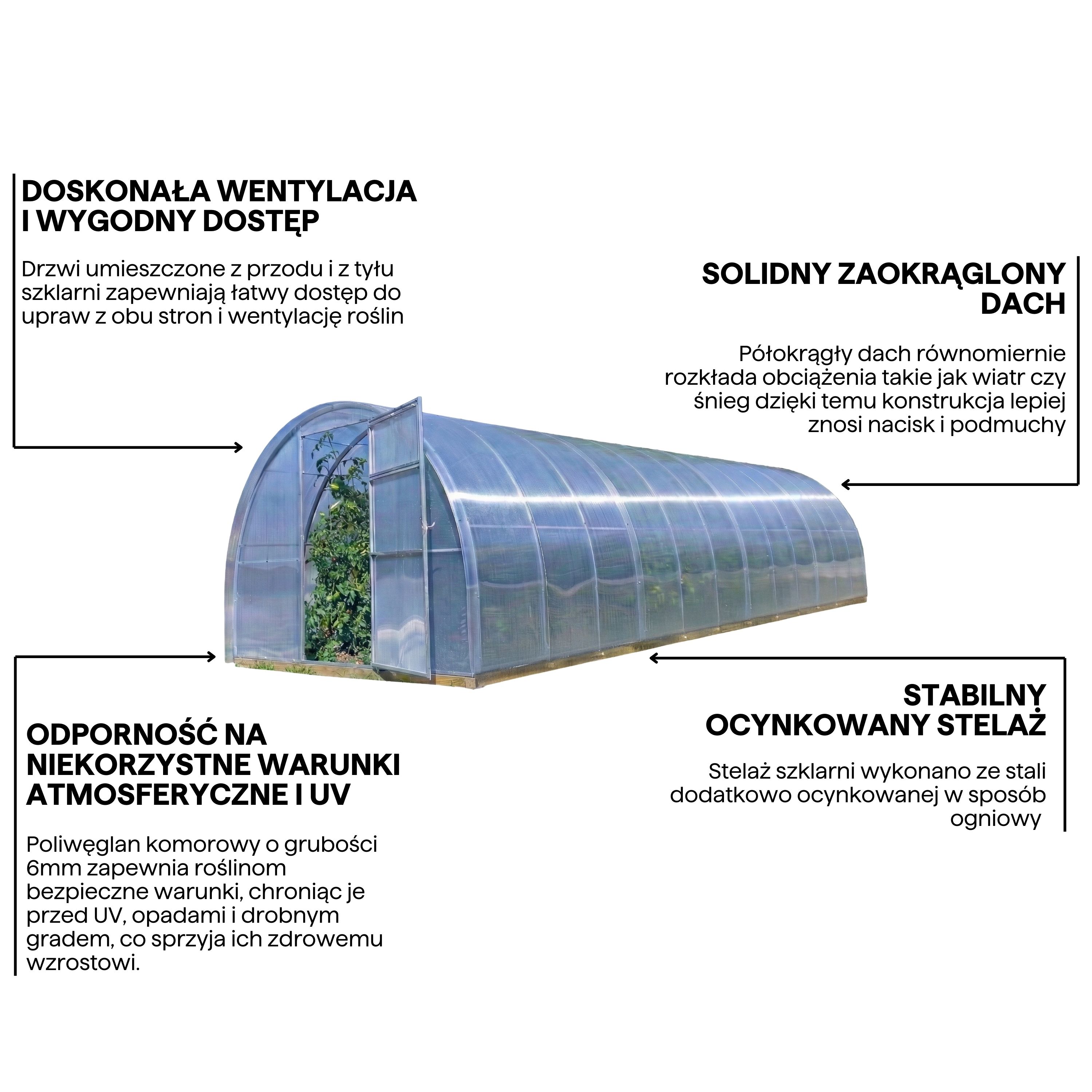 Dzięki doskonałej izolacji powłoki, szklarnia utrzymuje optymalny mikroklimat, tworząc idealne warunki dla zdrowego rozwoju roślin.