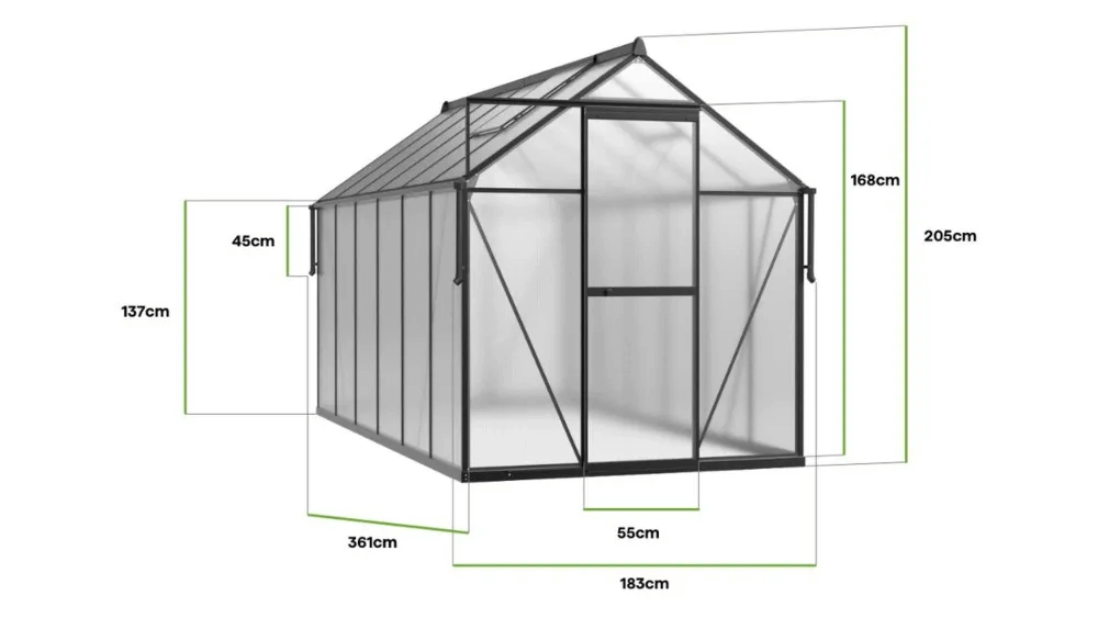 Szklarnia poliwęglanowa Slide-In 183x361cm Black marki Cultivo to propozycja, która przenosi uprawę roślin na wyższy poziom. Dzięki długości aż 361 cm, ten model oferuje imponującą przestrzeń, idealną do pielęgnacji różnorodnych upraw – od warzyw i owoców po kwiaty czy zioła. Jej czarne wykończenie sprawia, że szklarnia staje się nie tylko praktycznym, ale także stylowym elementem ogrodu, który przyciąga uwagę. Panele poliwęglanowe o grubości 4 mm, wyposażone w ochronę UV, gwarantują odpowiednie rozproszenie światła i ochronę przed szkodliwym promieniowaniem, zapewniając idealne warunki wzrostu roślin. Wytrzymała aluminiowa rama i ocynkowana stalowa podstawa to pewność, że szklarnia przetrwa lata, niezależnie od warunków atmosferycznych. Innowacyjny system montażu Slide-In eliminuje konieczność stosowania klipsów, co znacząco ułatwia montaż i zwiększa stabilność konstrukcji. Dwa okna wentylacyjne oraz przesuwne drzwi o wymiarach 168x55 cm zapewniają optymalny przepływ powietrza i łatwy dostęp do wnętrza. Szklarnia ogrodowa Slide-In Black 183x361cm to doskonały wybór zarówno dla początkujących, jak i doświadczonych ogrodników, którzy cenią sobie przestronność, trwałość i styl.