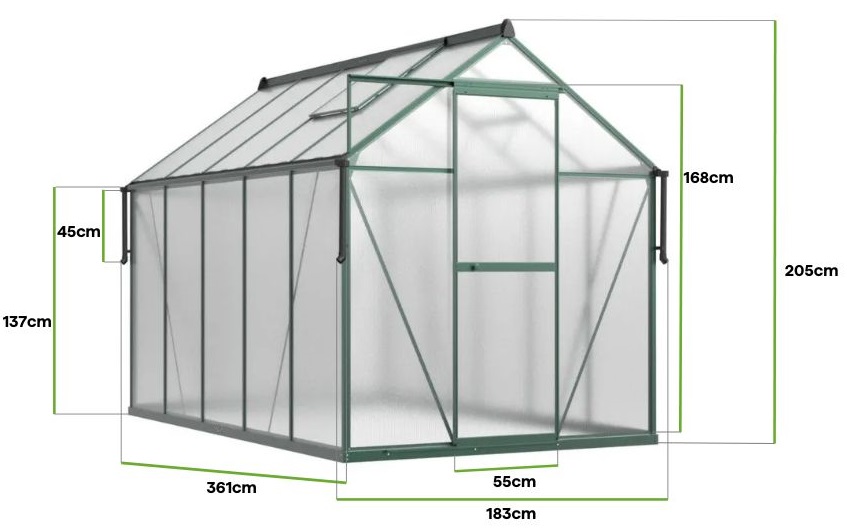 Szklarnia ogrodowa z poliwęglanu Slide-In 183x361cm Dark Green - Cultivo