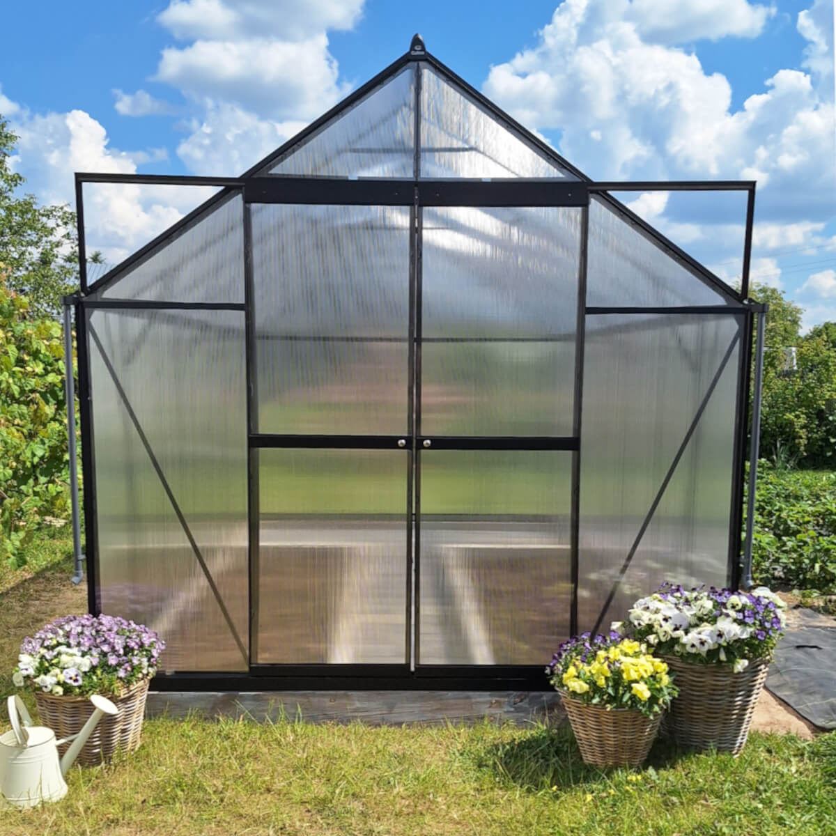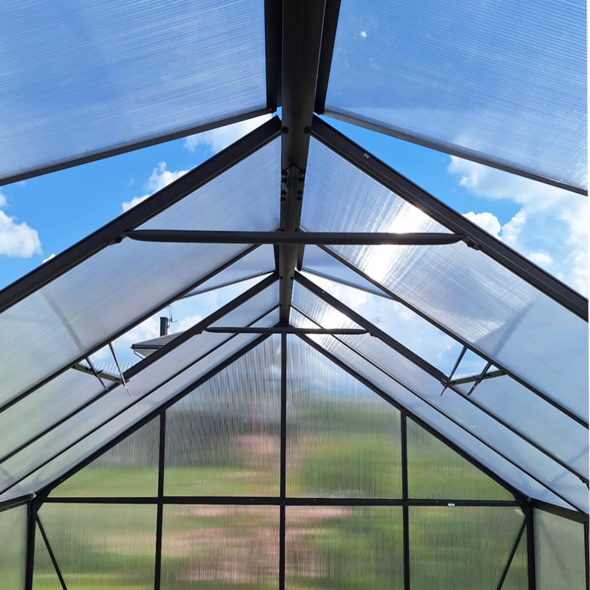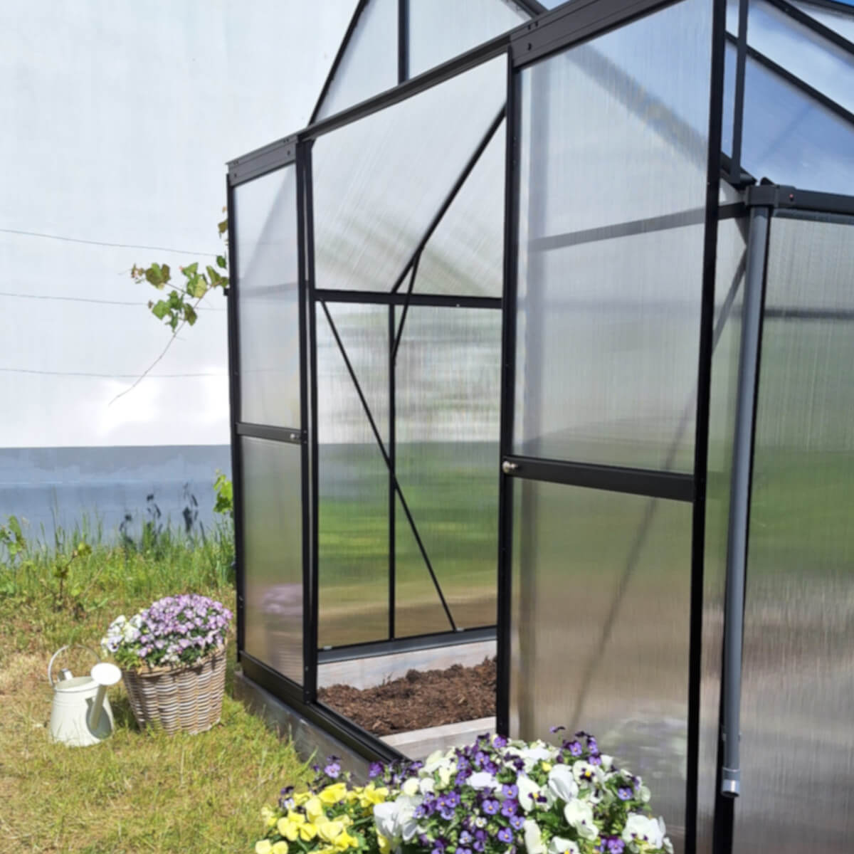 W tej wersji szklarni zastosowano poliwęglan 4 mm wzbogacony o specjalną folię ochronną, która tworzy skuteczną barierę izolacyjną i zapewnia roślinom stabilny mikroklimat nawet podczas chłodniejszych dni, dodatkowo zastosowano ochronę UV, która chroni rośliny przed nadmiernym nasłonecznieniem