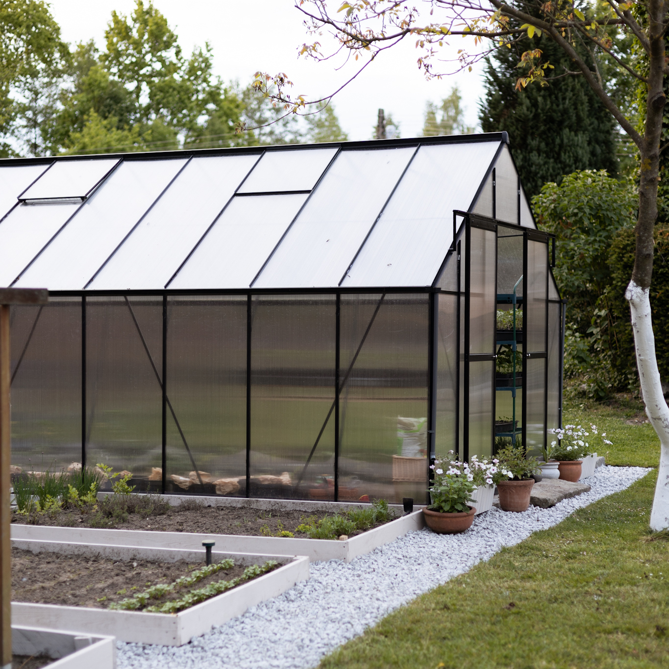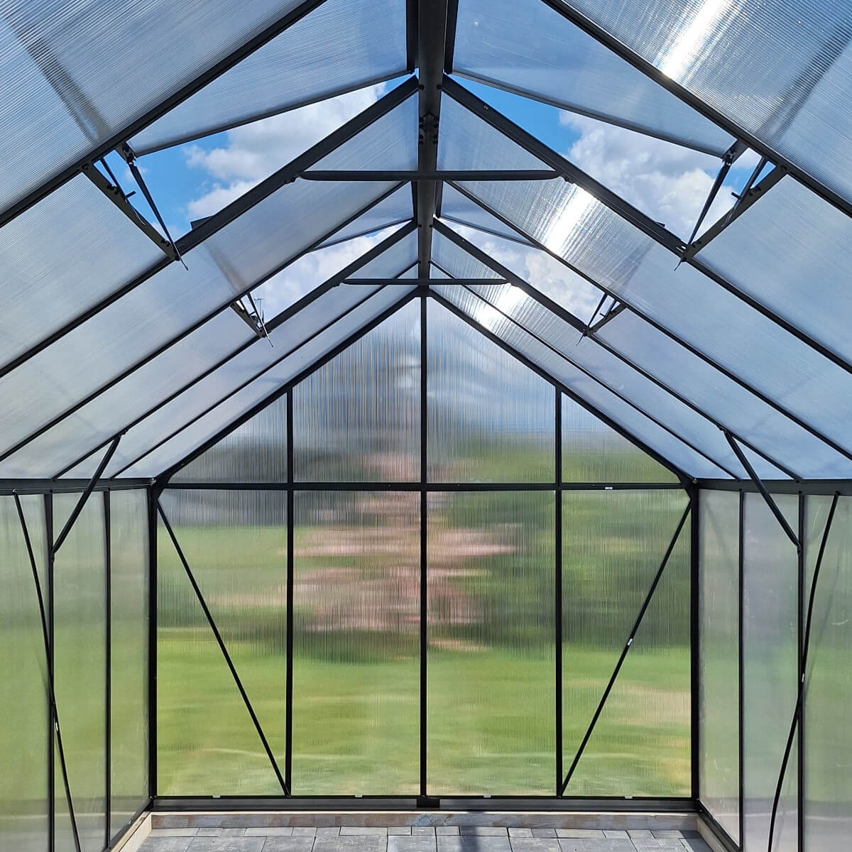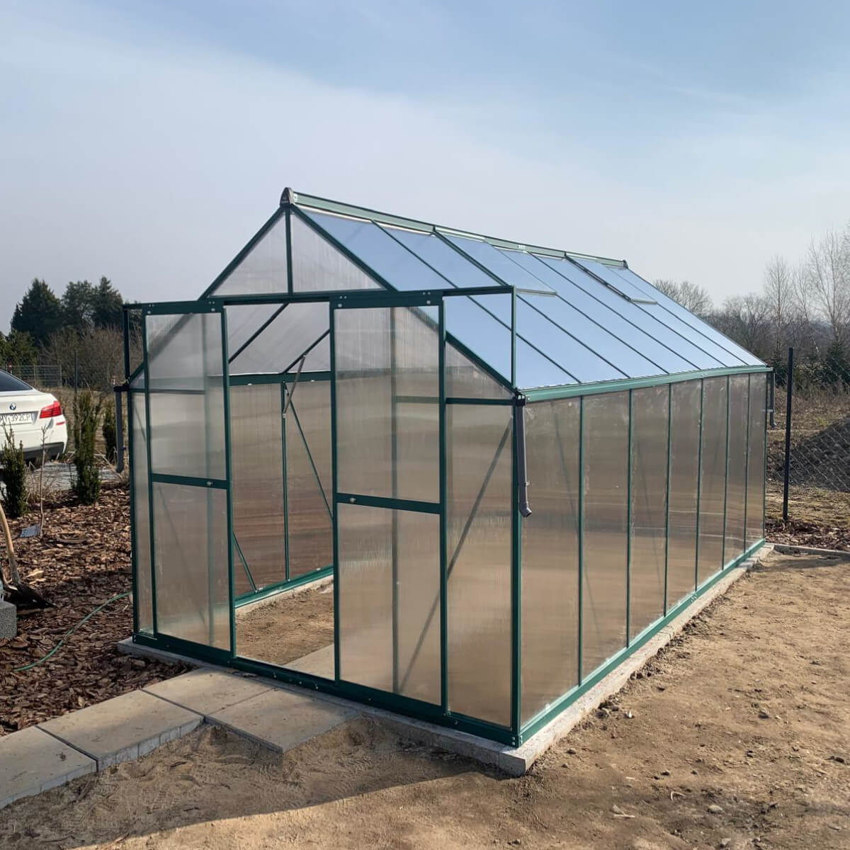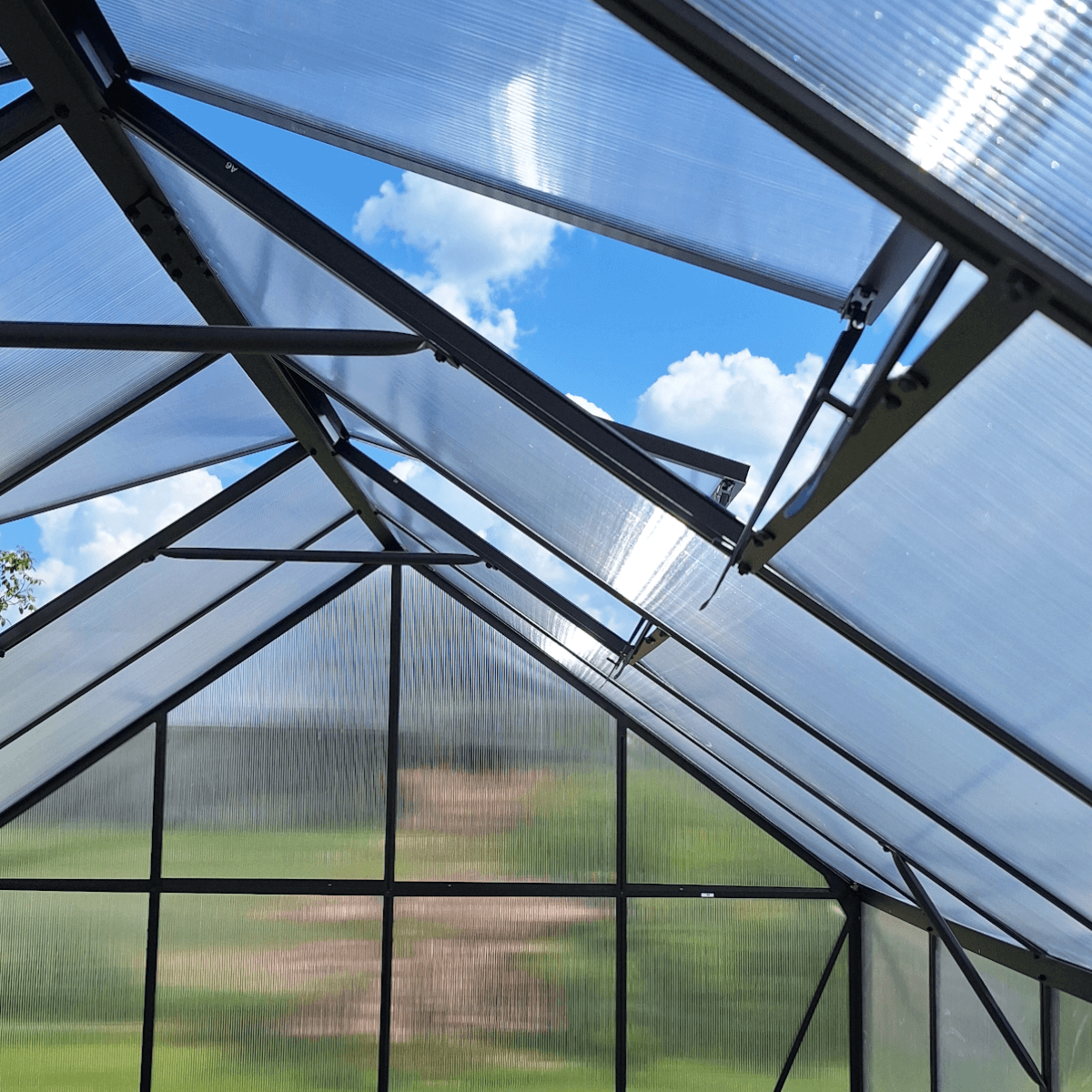 W tej wersji szklarni zastosowano poliwęglan 4 mm wzbogacony o specjalną folię ochronną, która tworzy skuteczną barierę izolacyjną i zapewnia roślinom stabilny mikroklimat nawet podczas chłodniejszych dni, dodatkowo zastosowano ochronę UV, która chroni rośliny przed nadmiernym nasłonecznieniem