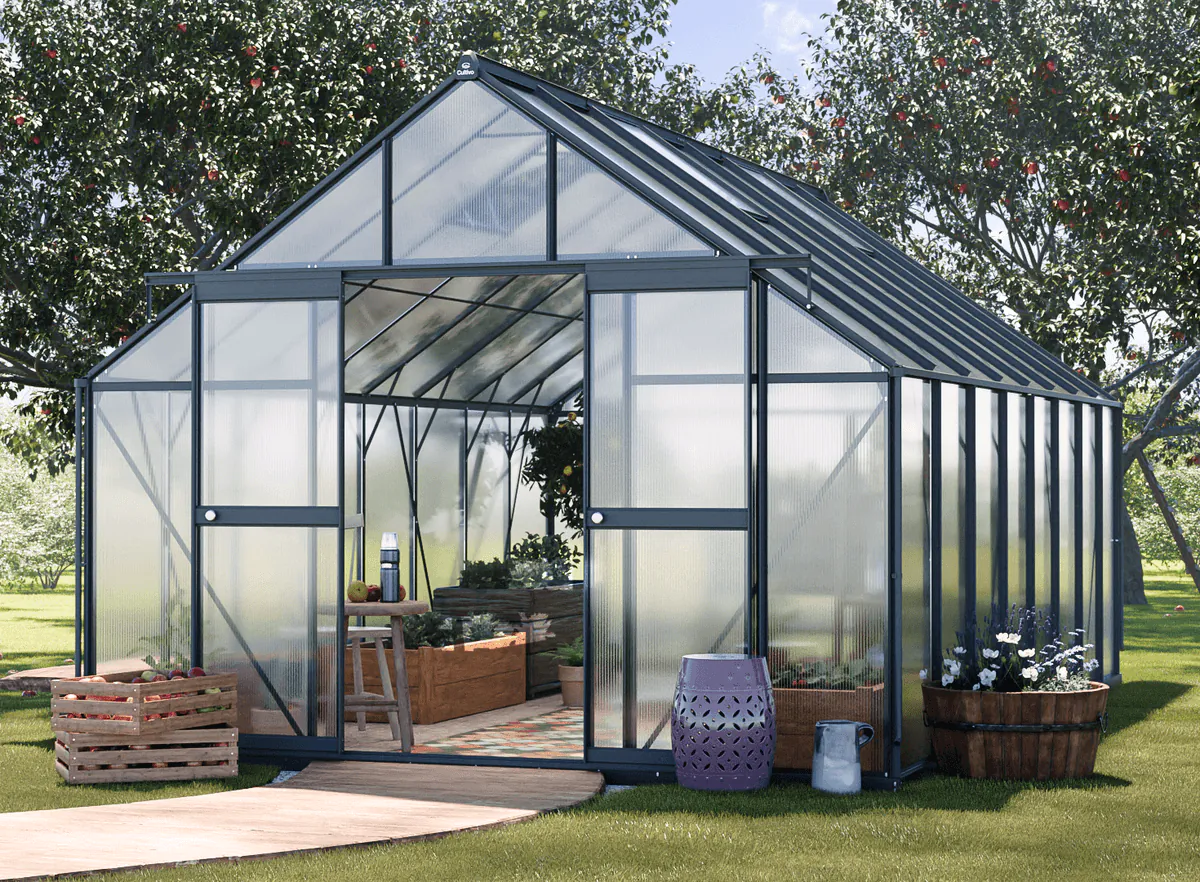 Oferujemy przestronną szklarnię ogrodową, która stanowi doskonałe rozwiązanie dla każdego, kto marzy o efektywnej uprawie roślin w komfortowych warunkach. Szklarnia poliwęglanowa Slide-In 305x489cm Black – Cultivo to funkcjonalne rozwiązanie, które łączy trwałość, przestronność i estetykę. Wykonana z solidnej aluminiowej ramy oraz dwuściennych paneli poliwęglanowych 6 mm, zapewnia doskonałą ochronę przed szkodliwym promieniowaniem UV, jednocześnie pozwalając na optymalne oświetlenie wnętrza. Dzięki innowacyjnemu systemowi Slide-In, panele wsuwane są w ramy, co zapewnia ich większą stabilność i odporność na warunki atmosferyczne. Szklarnia ma imponujące wymiary: 489 cm długości, 305 cm szerokości i 245 cm wysokości, co daje obszerną przestrzeń do uprawy roślin. Cztery okna wentylacyjne umożliwiają efektywną cyrkulację powietrza, zapewniając odpowiednią wilgotność i zapobiegając przegrzewaniu się roślin. Przesuwne drzwi o wymiarach 172x114 cm ułatwiają dostęp do wnętrza, a wysokość ścian sprawia, że poruszanie się wewnątrz jest wygodne. Dodatkowym atutem jest rynna deszczowa o długości 45 cm, umożliwiająca zbieranie wody deszczowej, co sprzyja ekologicznemu nawadnianiu upraw. Ta szklarnia to doskonały wybór dla każdego ogrodnika, który ceni jakość i funkcjonalność. Idealna do całorocznej uprawy roślin!