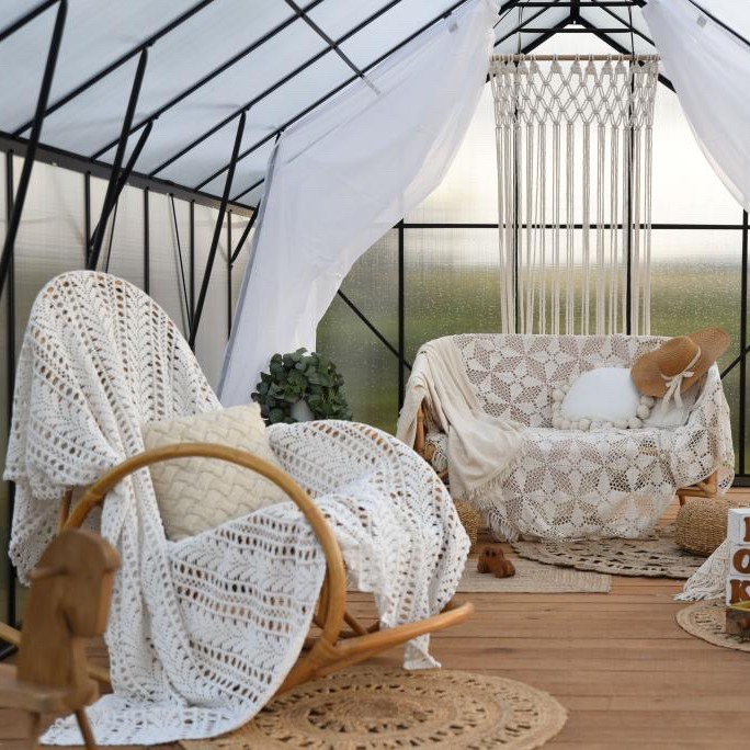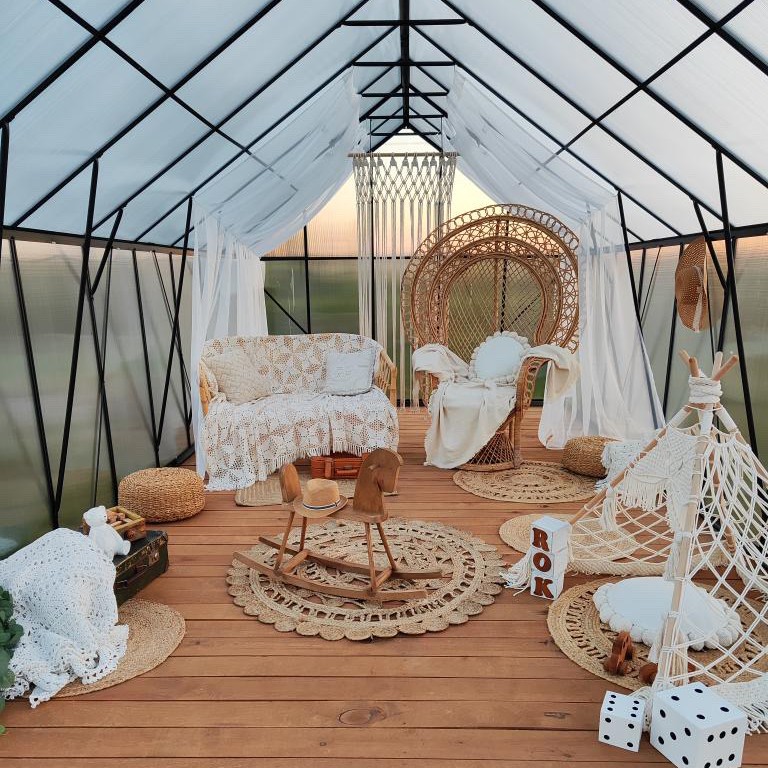 Poliwęglan komorowy 6 mm z dodatkową folią tworzy skuteczną barierę cieplną, stabilizując mikroklimat roślin w chłodniejsze dni. Powłoka UV ogranicza nadmierne nasłonecznienie.