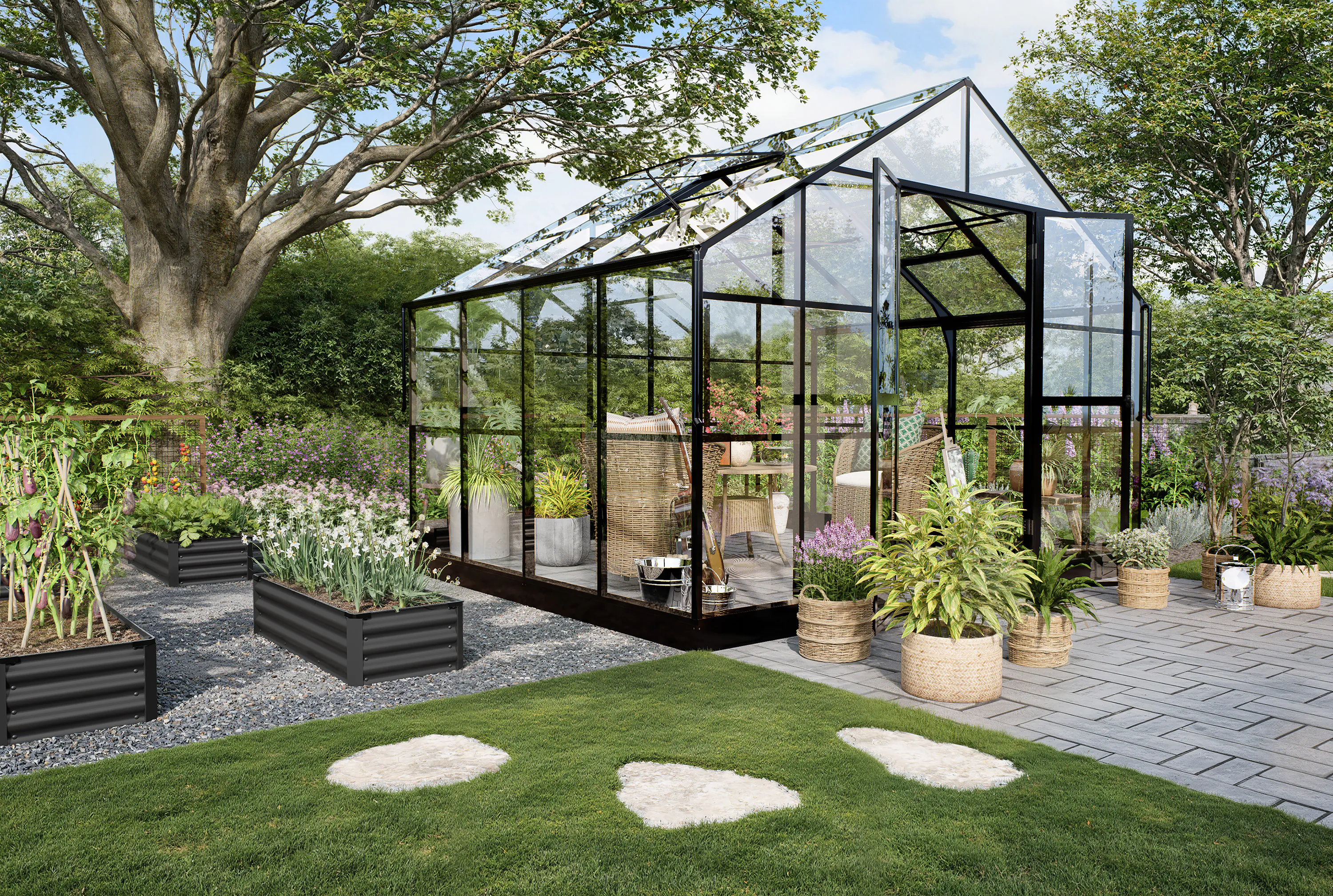 - Niskoprogowe wejście sprawia, że korzystanie ze szklarni jest wyjątkowo komfortowe i dostępne dla każdego użytkownika.
