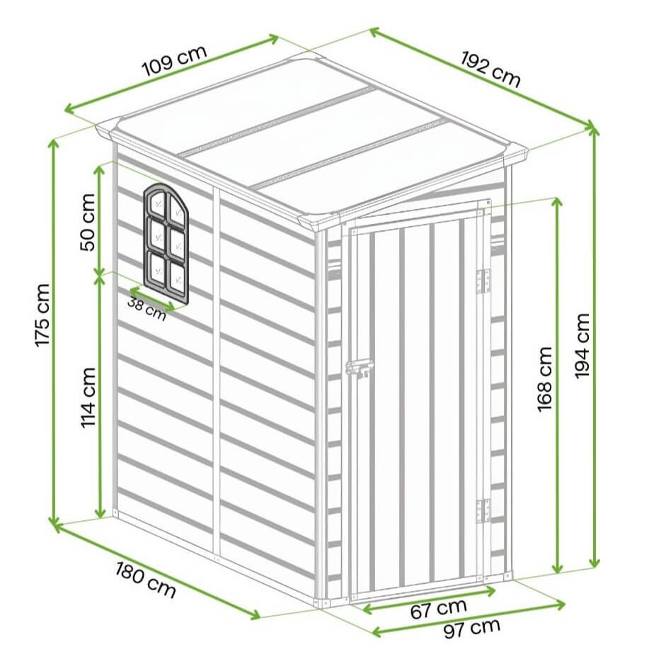 Boston to praktyczny domek narzędziowy w kolorze Light Grey, doskonały do przechowywania sprzętu ogrodowego lub narzędzi na działce czy w ogrodzie. Zewnętrzne wymiary 109x192 cm oraz wysokość 194 cm sprawiają, że świetnie sprawdzi się nawet w ograniczonej przestrzeni, np. w małych ogródkach. Konstrukcja domku oparta jest na trwałym polipropylenie, który cechuje się lekkością, a jednocześnie wysoką odpornością na warunki atmosferyczne i uszkodzenia. Przemyślana konstrukcja obejmuje spadowy dach, który skutecznie odprowadza wodę i śnieg, oraz otwór wentylacyjny, gwarantujący dobrą cyrkulację powietrza i chroniący wnętrze przed wilgocią.