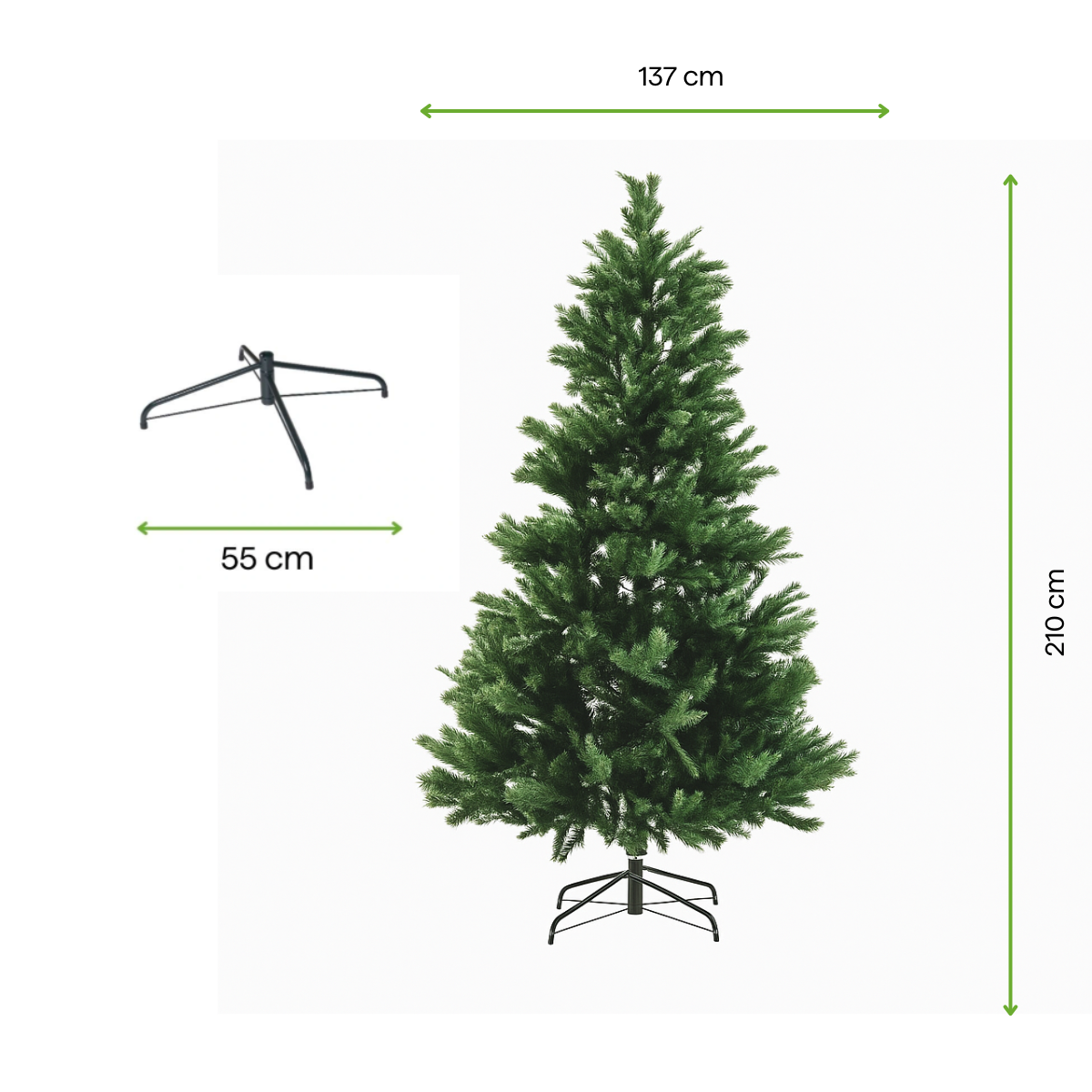 Sztuczna choinka świerk SHINY 210 cm to elegancka ozdoba, która świetnie sprawdzi się w salonie, biurze czy przestronnym pokoju – sprawdź, jak może wyglądać u Ciebie i ciesz się magią świąt.