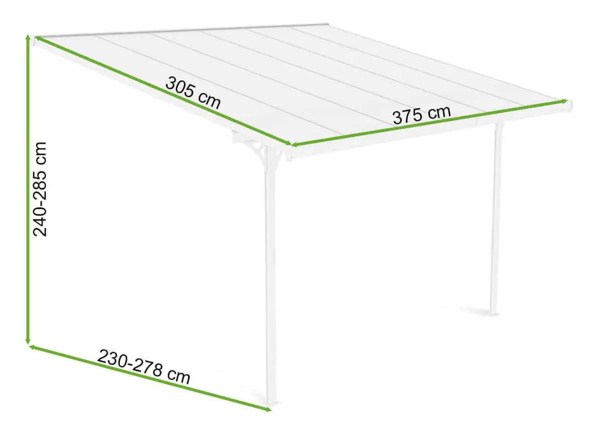 Dzięki przemyślanej konstrukcji i wymiarom 305 × 375 × 240–285 cm przestrzeń pod zadaszeniem tarasowym Atlanta zapewnia wygodę przebywania na świeżym powietrzu bez względu na pogodę. Lekka, stabilna konstrukcja została zaprojektowana z myślą o prostym montażu, co ułatwia dopasowanie jej do dostępnej powierzchni. Zadaszenie skutecznie odprowadza wodę opadową i chroni przed intensywnym nasłonecznieniem, co zwiększa trwałość oraz komfort codziennego użytkowania.