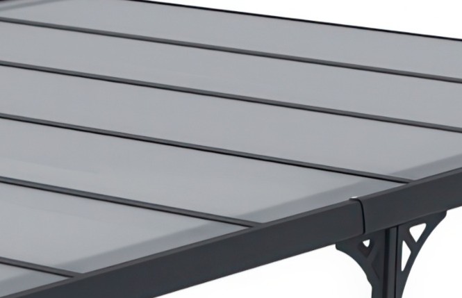 Wiata garażowa została wykonana z solidnej konstrukcji aluminiowej oraz odpornego poliwęglanu, co zapewnia wysoką stabilność i trwałość w codziennym użytkowaniu. Zastosowane materiały wykazują odporność na czynniki atmosferyczne i nie wymagają czasochłonnej konserwacji, dzięki czemu zadaszenie zachowuje swoje właściwości i estetykę przez długi okres eksploatacji.