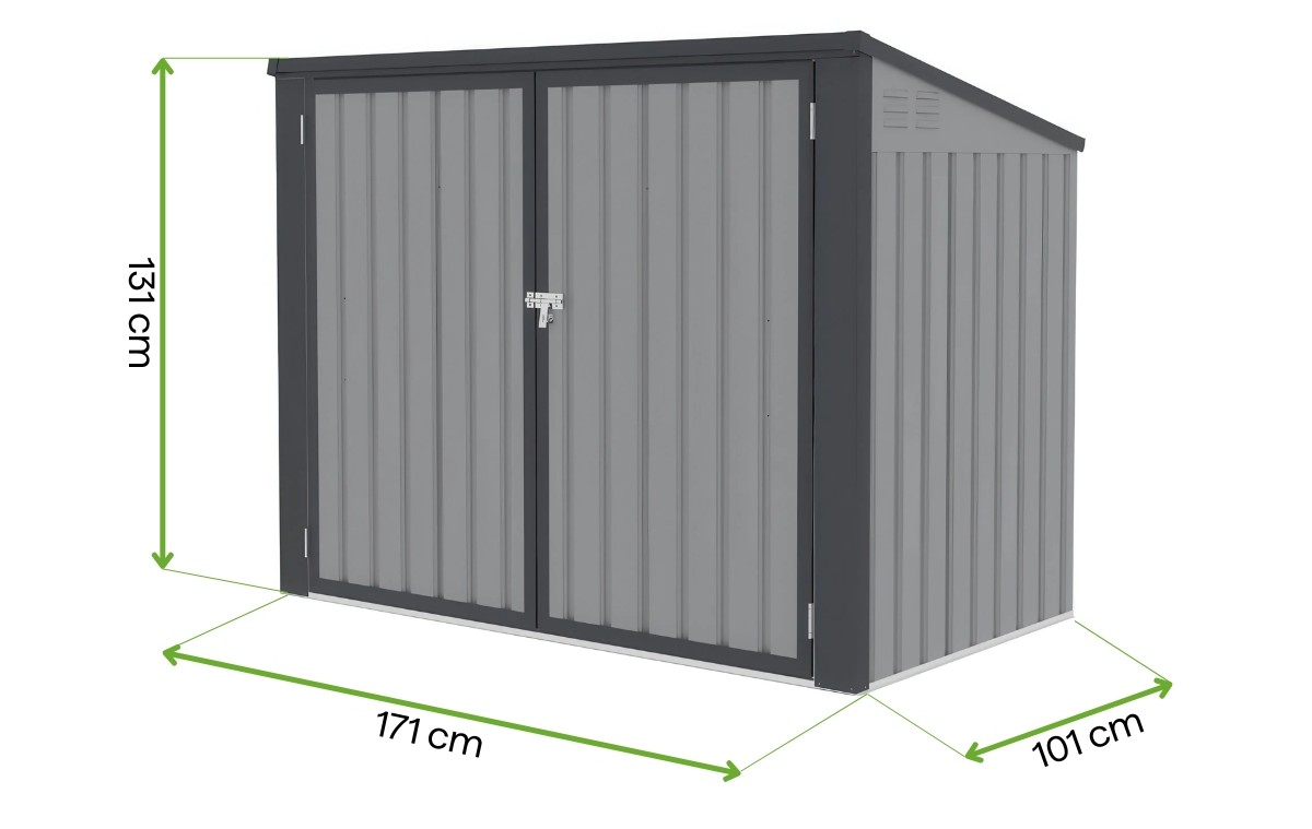 Zabudowa do koszy na śmieci Davis 173 × 101 cm Light Grey to solidne i estetyczne rozwiązanie do uporządkowania przestrzeni wokół domu. Wykonana ze stali ocynkowanej, zapewnia odporność na warunki atmosferyczne i trwałość. Funkcjonalne drzwiczki oraz górne klapy ułatwiają dostęp, a nowoczesny design harmonizuje z otoczeniem, poprawiając estetykę i porządek.
