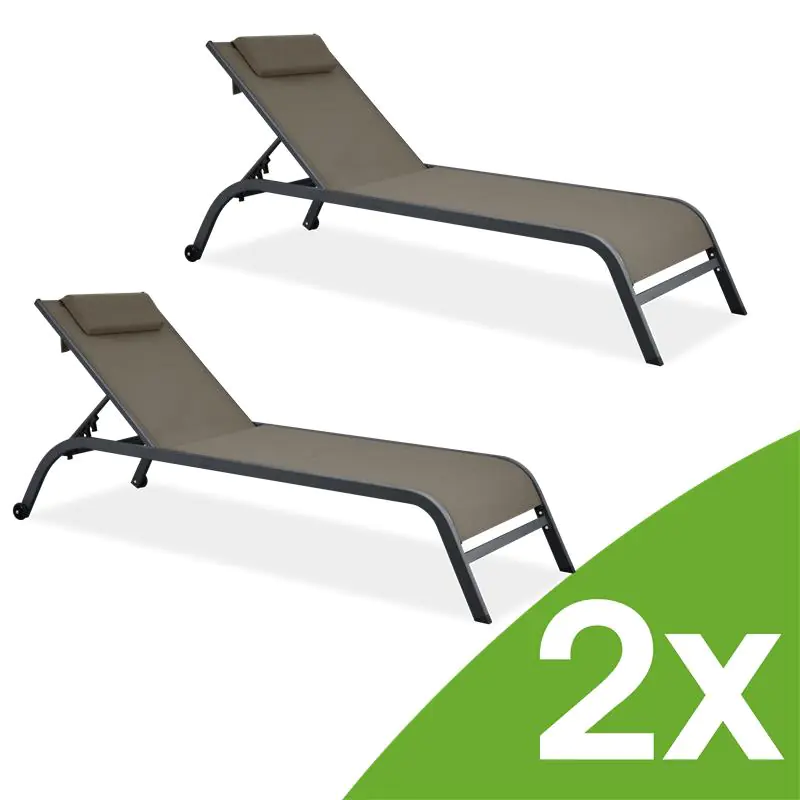Zestaw 2 leżaków ogrodowych stalowych TIMOR Taupe - Bjørkka