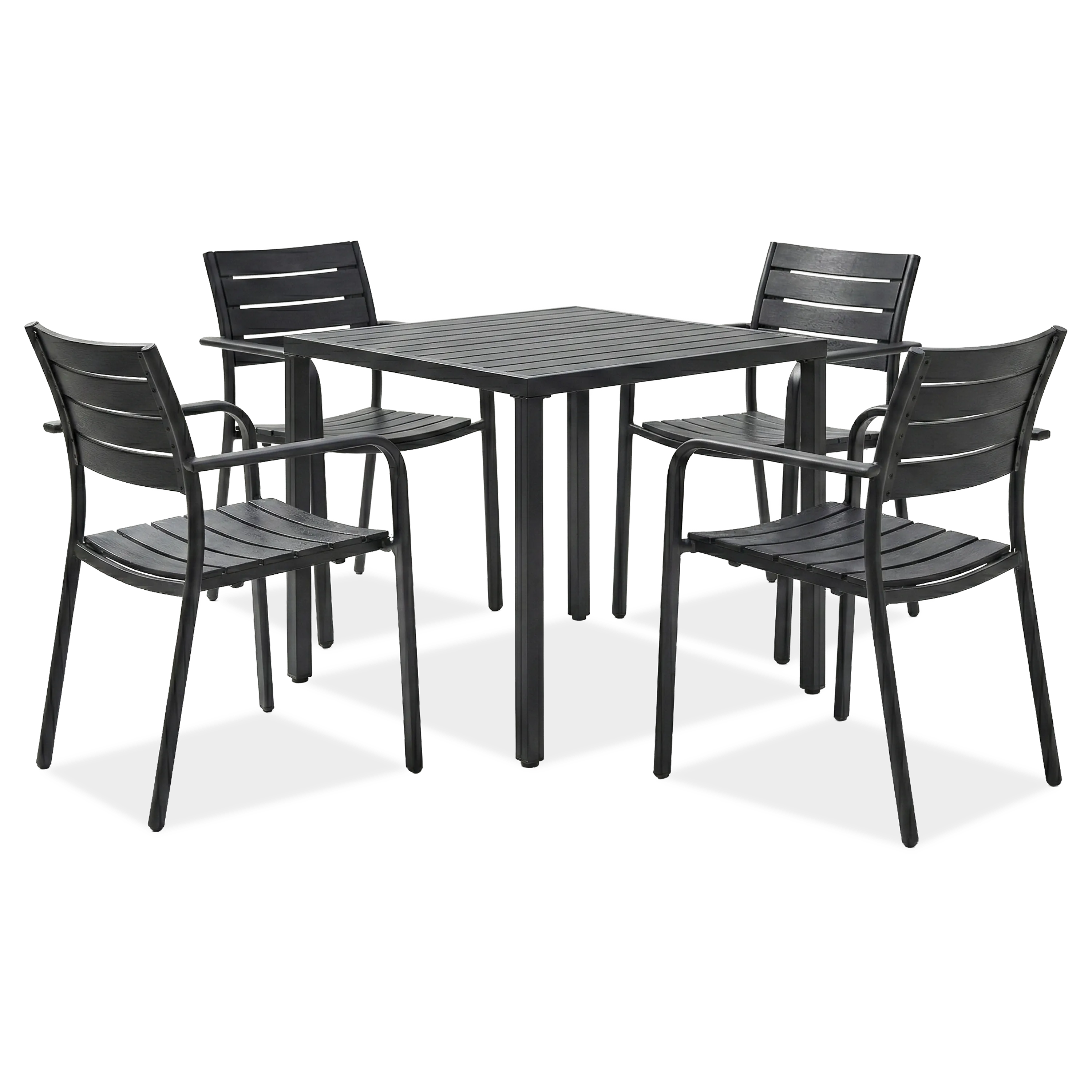 Zestaw do ogrodu MILO/BRIS Black – Bjørkka to nowoczesne i funkcjonalne rozwiązanie na taras, do ogrodu oraz przestrzeni komercyjnych. Krzesła MILO z trwałego tworzywa PP z filtrem UV oraz metalową konstrukcją malowaną proszkowo są lekkie, sztaplowane i odporne na warunki atmosferyczne, a ich nośność do 150 kg potwierdza solidność wykonania. Stół BRIS posiada wytrzymały blat z tworzywa oraz stalowe nogi zabezpieczone powłoką do użytku zewnętrznego, a jego wymiary 83,5 × 83,5 cm sprawiają, że świetnie sprawdzi się zarówno w mniejszych, jak i większych aranżacjach. Antypoślizgowe stopki oraz stabilna konstrukcja zapewniają bezpieczeństwo i komfort codziennego użytkowania.