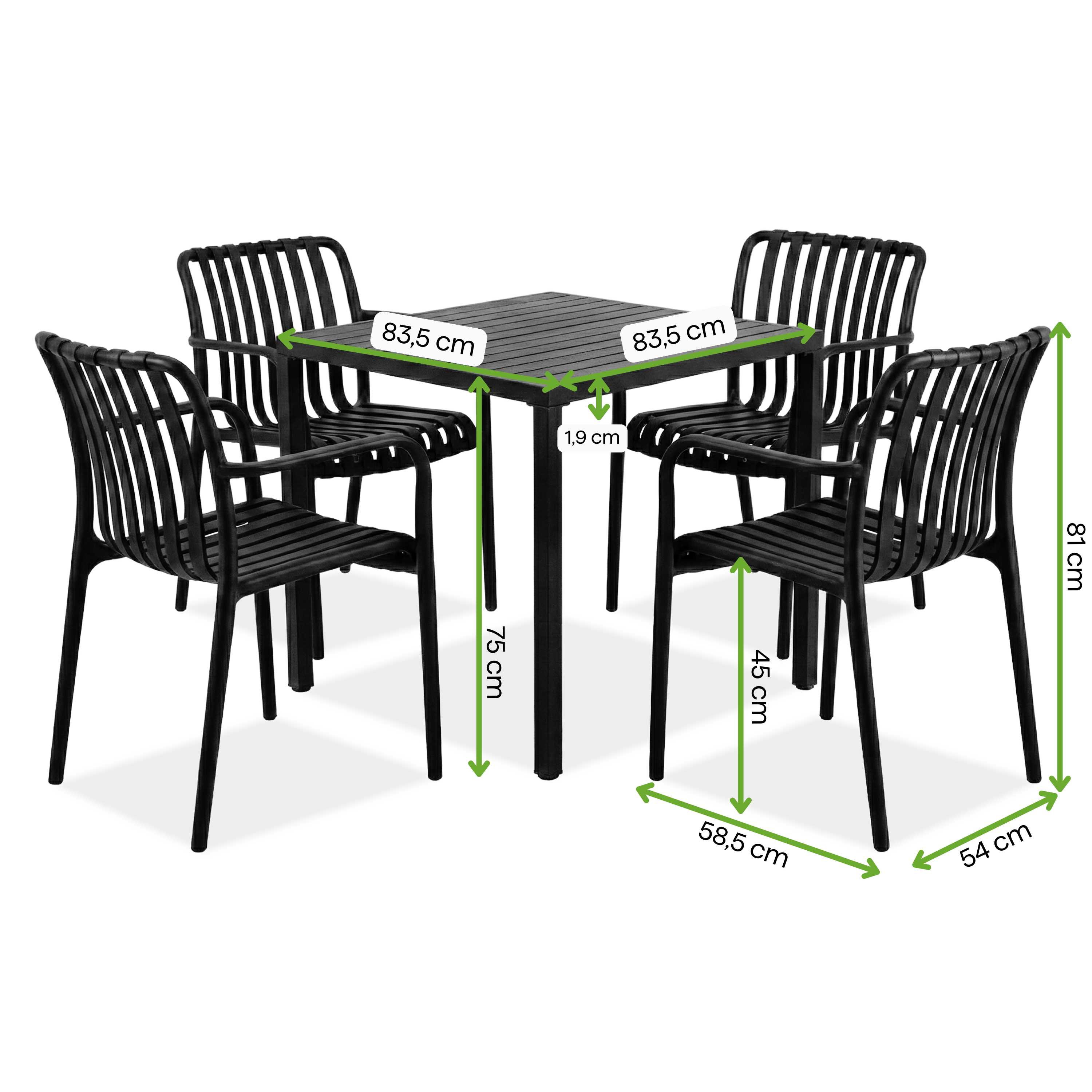 Zestaw harmonijnie uzupełnia aranżację tarasu, ogrodu lub patio, tworząc spójną i funkcjonalną przestrzeń wypoczynkową. Jego proporcje i jednolita stylistyka sprzyjają komfortowemu relaksowi na świeżym powietrzu.