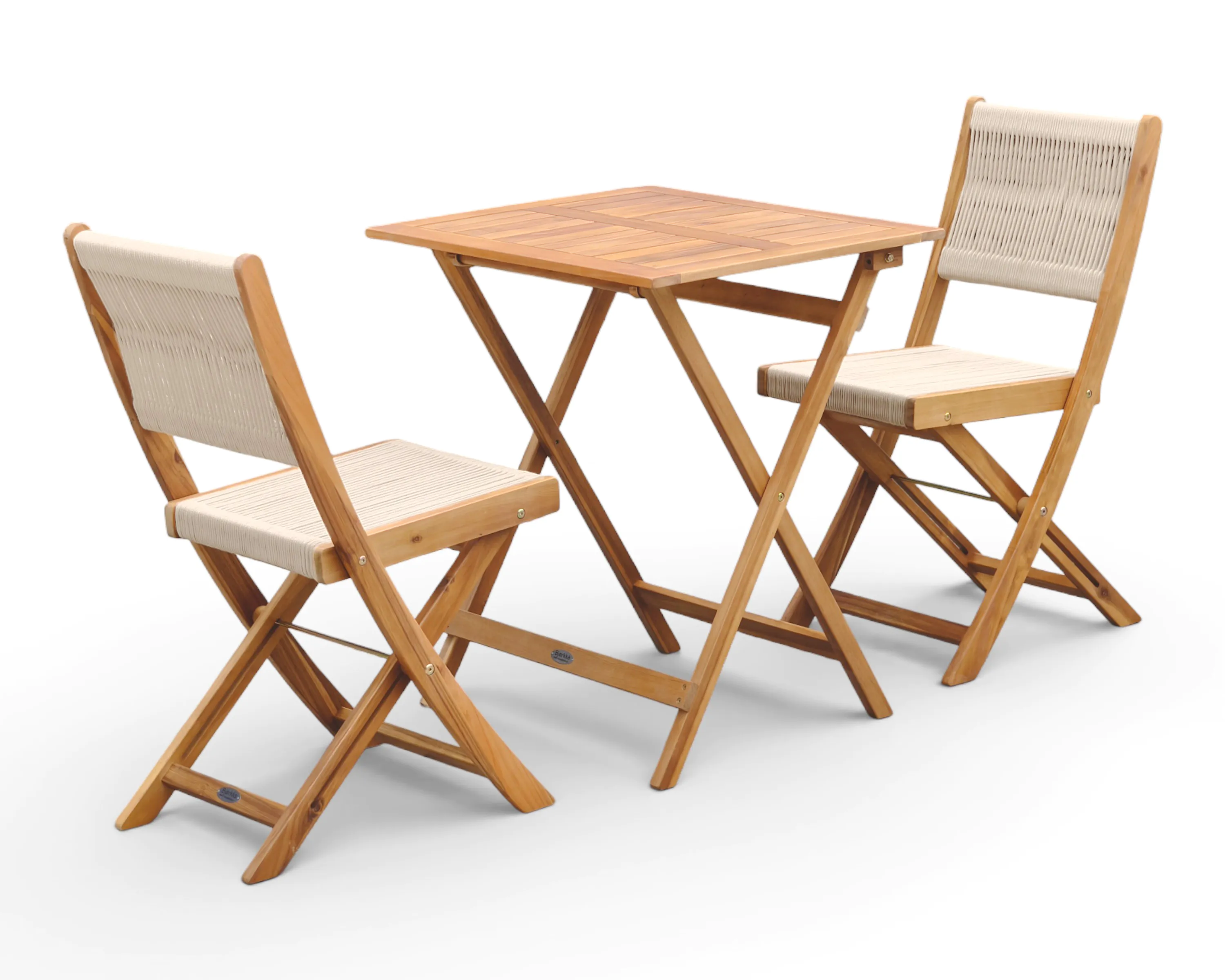 Zestaw drewniany na balkon SOMA BALCONY ACACIA WOOD marki Bjørkka to kwintesencja skandynawskiego designu i trwałości. Wykonany z drewna akacjowego, zachwyca naturalnym usłojeniem oraz odpornością na zmienne warunki pogodowe. Ergonomiczne krzesła z nowoczesnym wyplotem z liny poliestrowej gwarantują najwyższy komfort wypoczynku. Dzięki funkcji składania, ten elegancki komplet mebli balkonowych idealnie optymalizuje przestrzeń, wprowadzając prestiż i ciepło na każdy taras.