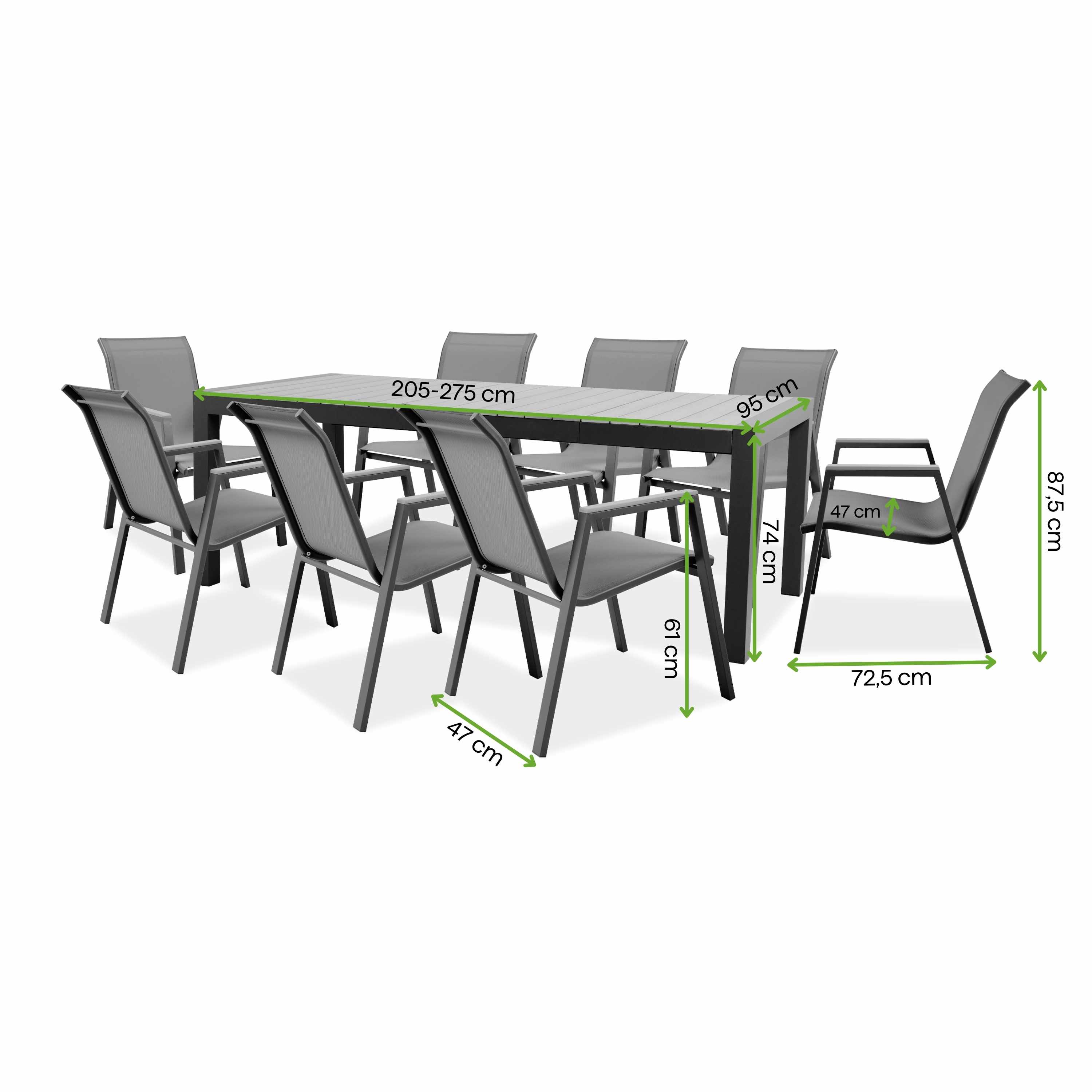 Zestaw jadalniany do ogrodu MALAWI 8+1 Dark Grey - Bjørkka