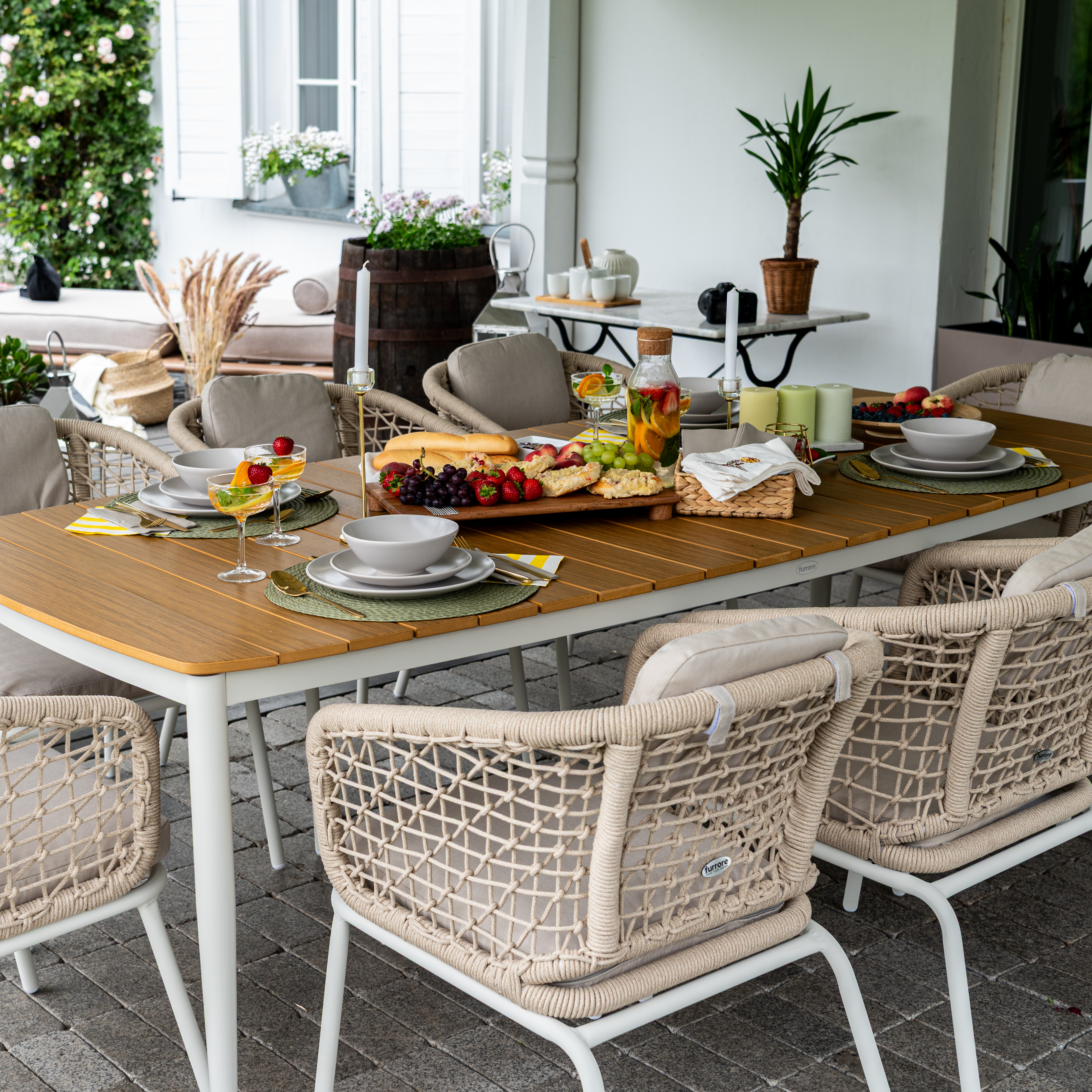 Potrzebujesz inspiracji? Oto kilka przykładowych realizacji zestawu jadalnianego ROMA DINNING 8+1 Light Beige - FURRORE u naszych klientów. Nie czekaj! Tak może wyglądać Twój ogród!