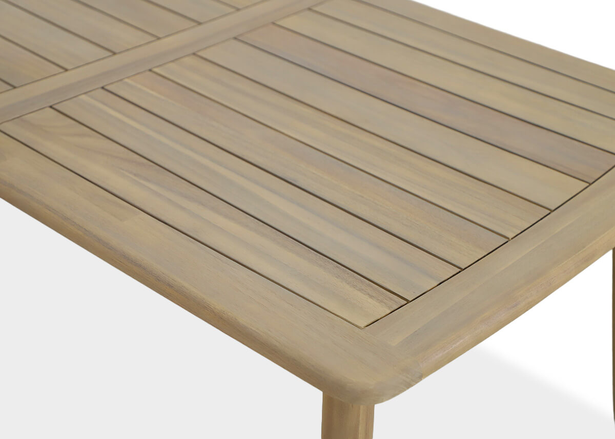 Konstrukcja została wykonana z drewna akacjowego z certyfikatem FSC to połączenie trwałości i dbałości o środowisko. Drewno akacjowe jest odporne na uszkodzenia i wilgoć, dzięki czemu stół i krzesła zachowają swój piękny wygląd przez długie lata. Naturalna, ciepła kolorystyka akacji wprowadza do wnętrza lub ogrodu przytulną i elegancką atmosferę.