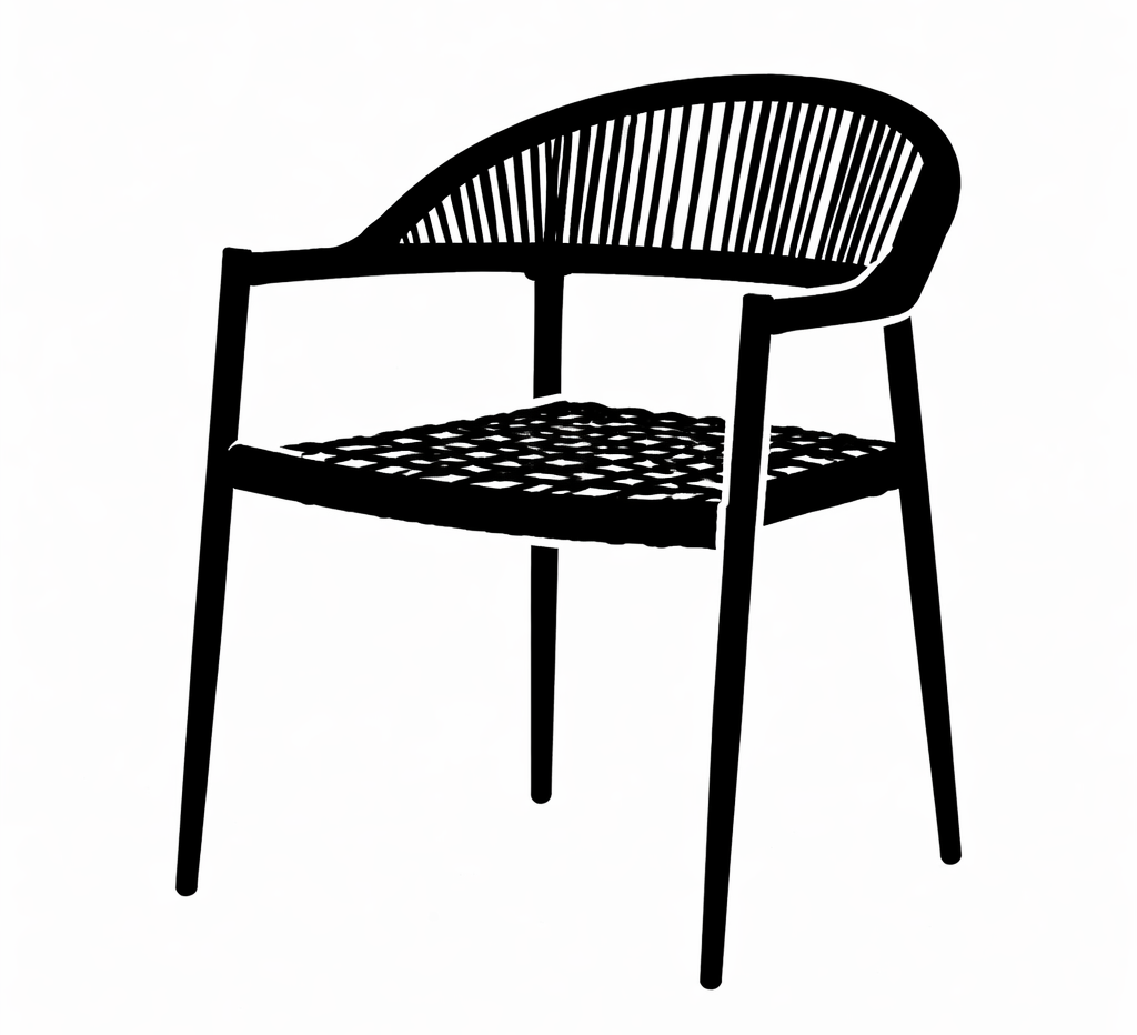 Plecionka PE nadaje krzesłom lekkości i eleganckiego charakteru. Stanowi estetyczny detal, który podkreśla nowoczesny wygląd całego zestawu.