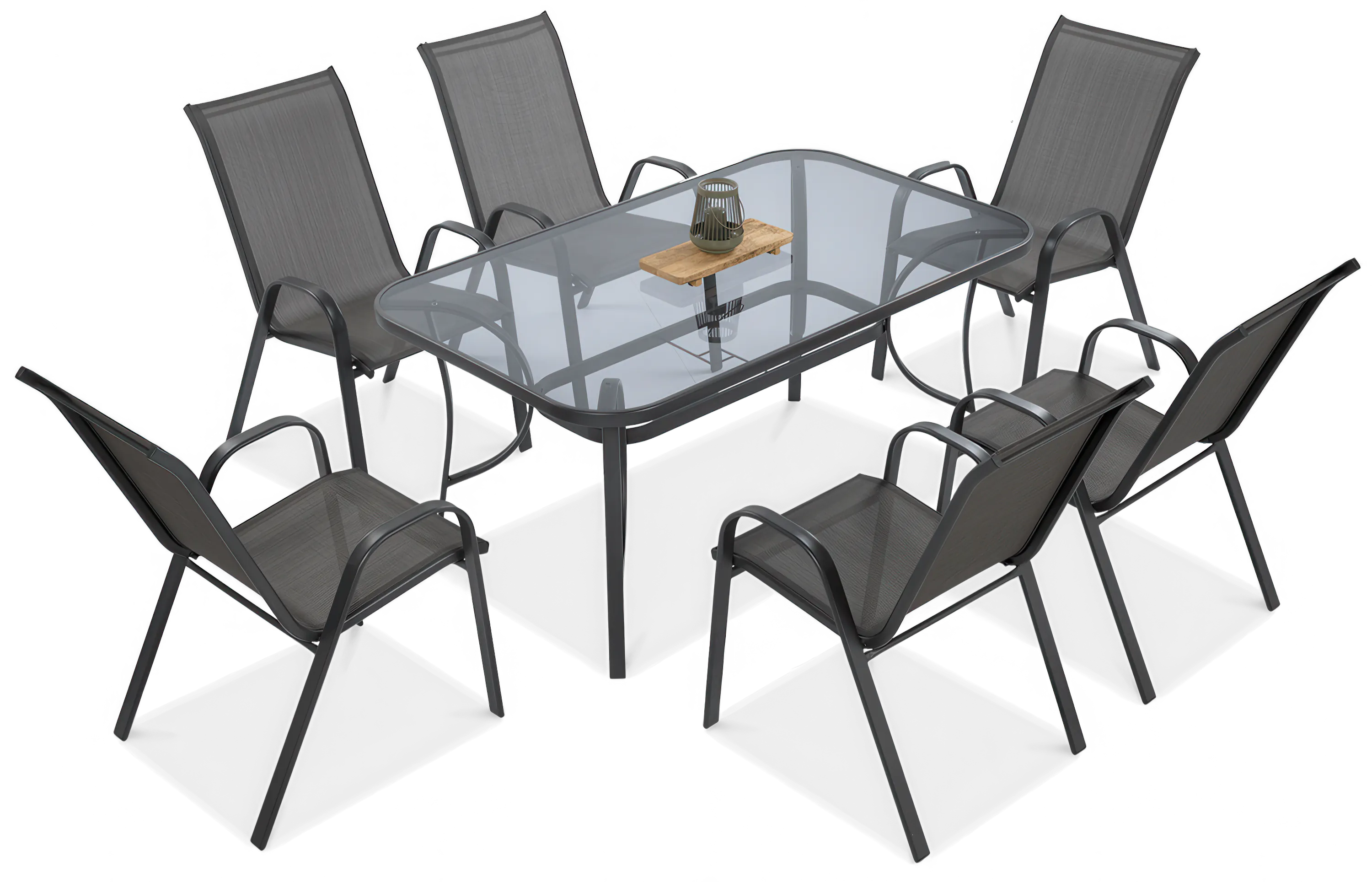 Serdecznie zachęcamy do nabycia dużego i wygodnego zestawu mebli ogrodowych o nazwie BOLOGNA. Ten kompletny zestaw składa się z 6 krzeseł oraz funkcjonalnego stołu. Konstrukcja mebli została wykonana z wytrzymałej stali, która została pomalowana proszkowo w pięknym jasnoszarym odcieniu. Krzesła zostały wykończone trwałą tkaniną Textilene, która gwarantuje komfort użytkowania bez potrzeby stosowania poduszek. Natomiast blat stołu wykonany jest z hartowanego, eleganckiego szkła i posiada otwór na umieszczenie parasola. Zestaw ten jest również bardzo łatwy do utrzymania w czystości. Co więcej, krzesła są sztaplowane, co oznacza, że można je składać jedno na drugie, dzięki czemu oszczędza się miejsce i ułatwia przechowywanie ich. Nasz produkt to idealne rozwiązanie dla osób poszukujących niedrogiego, estetycznego i praktycznego zestawu mebli ogrodowych, który można wykorzystać zarówno na tarasie, w ogrodzie, jak i na działce.