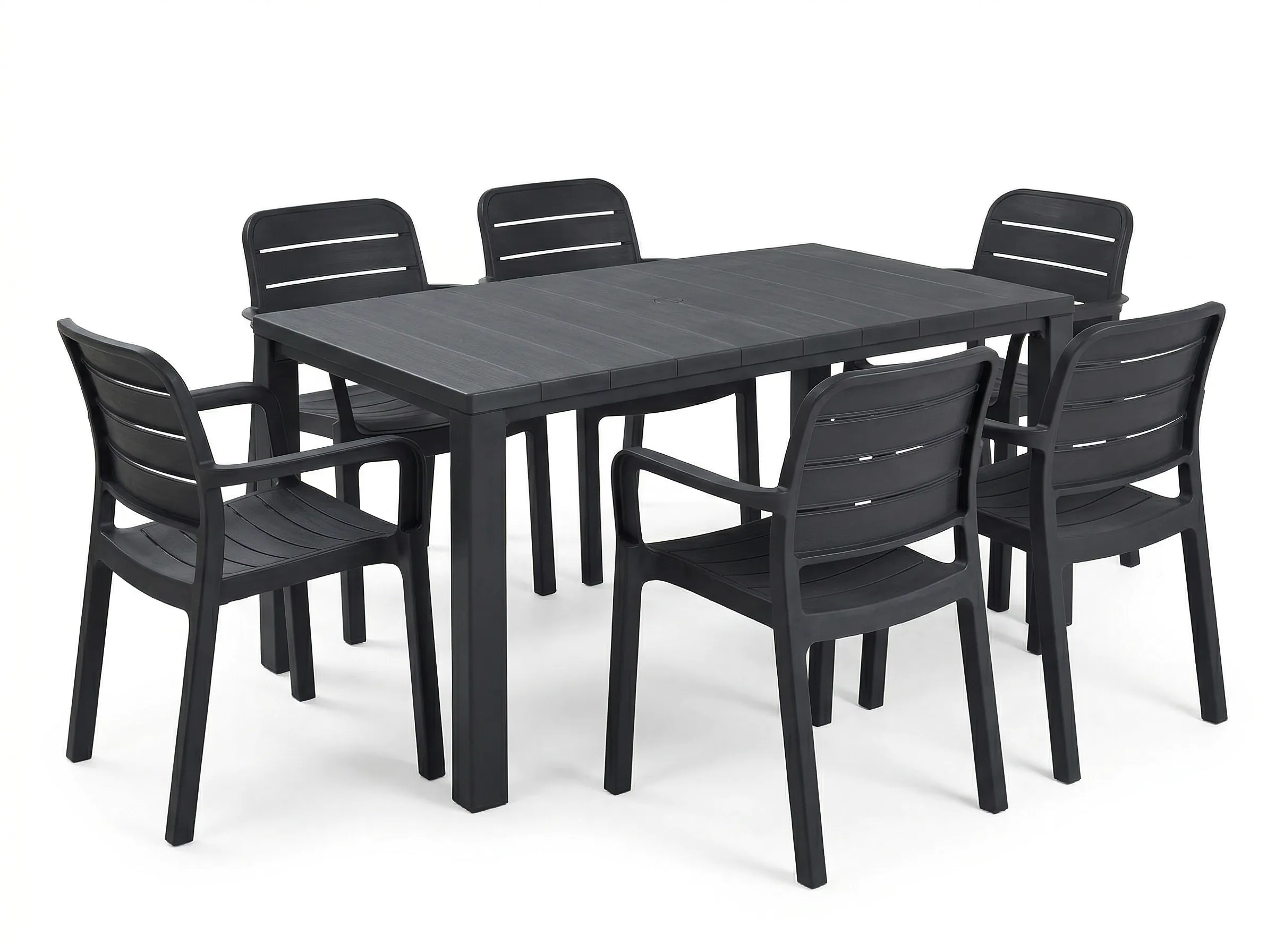 Odkryj luksusowy zestaw mebli ogrodowych TISARA/ JULIE 6+1 Graphite marki KETER, który zmieni Twoją przestrezę w prestiżową strefę relaksu. Komplet łączy nowoczesną estetykę z trwałością tworzywa sztucznego. Ergonomiczne krzesła Tisara z subtelnymi podłokietnikami oraz przestronny stół Julie o wyglądzie drewna tworzą idealną przestrzeń dla sześciu osób. Odporność na UV i deszcz gwarantuje nieskazitelny wygląd bez czasochłonnej konserwacji. Powierzchnia kompletu jest łatwa w czyszczeniu – wystarczy wilgotna ściereczka, aby utrzymać go w idealnym stanie. Ten komplet mebli ogrodowych to kwintesencja funkcjonalnego designu i trwałości.
