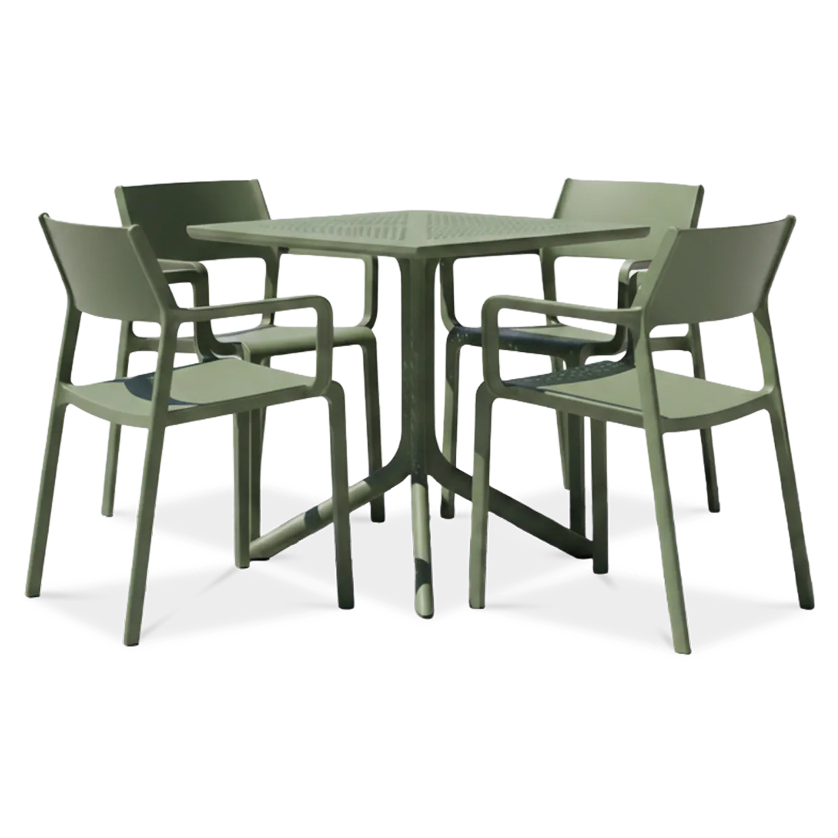 Wybierz włoską jakość premium i ponadczasowy design z zestawem mebli ogrodowych TRILL/CLIP 70 4+1 AGAVE od Nardi, idealnym do restauracji (HoReCa) i na prywatny taras. Zestaw zawiera stół CLIP 70 z czterema ergonomicznymi krzesłami TRILL w pięknym kolorze Agave. Meble wykonano z najwyższej jakości polipropylenu wzmocnionego włóknem szklanym, co zapewnia wyjątkową trwałość i maksymalną odporność na promienie UV oraz zmienne warunki atmosferyczne. Ich solidność i bezpieczeństwo potwierdza certyfikat użyteczności publicznej CATAS. Kwadratowy stół CLIP 70 posiada regulowane nóżki do perfekcyjnego poziomowania na nierównym podłożu, co jest kluczowe w użytkowaniu komercyjnym. Azurowy blat stołu z kompozytu DurelTOP to synonim wytrzymałości: nie chłonie wilgoci, nie blaknie i zachowuje idealny wygląd przez lata. Krzesła TRILL można sztamplować, co umożliwia kompaktowe przechowywanie poza sezonem i oszczędność miejsca. Inwestujesz w styl, funkcjonalność i długotrwałą estetykę Twojej przestrzeni zewnętrznej.