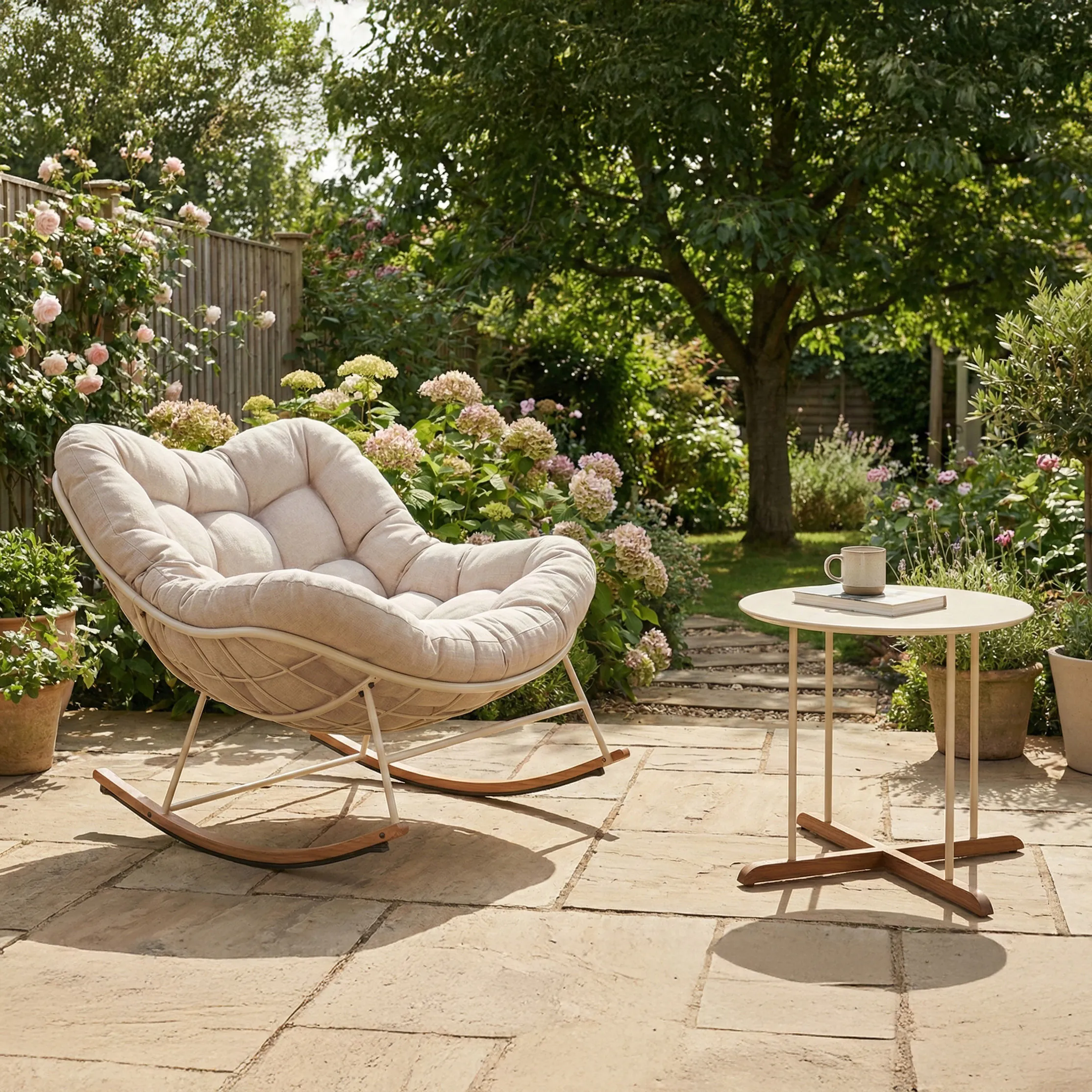 Zawartość zestawu: Fotel bujany z poduszką i stolik