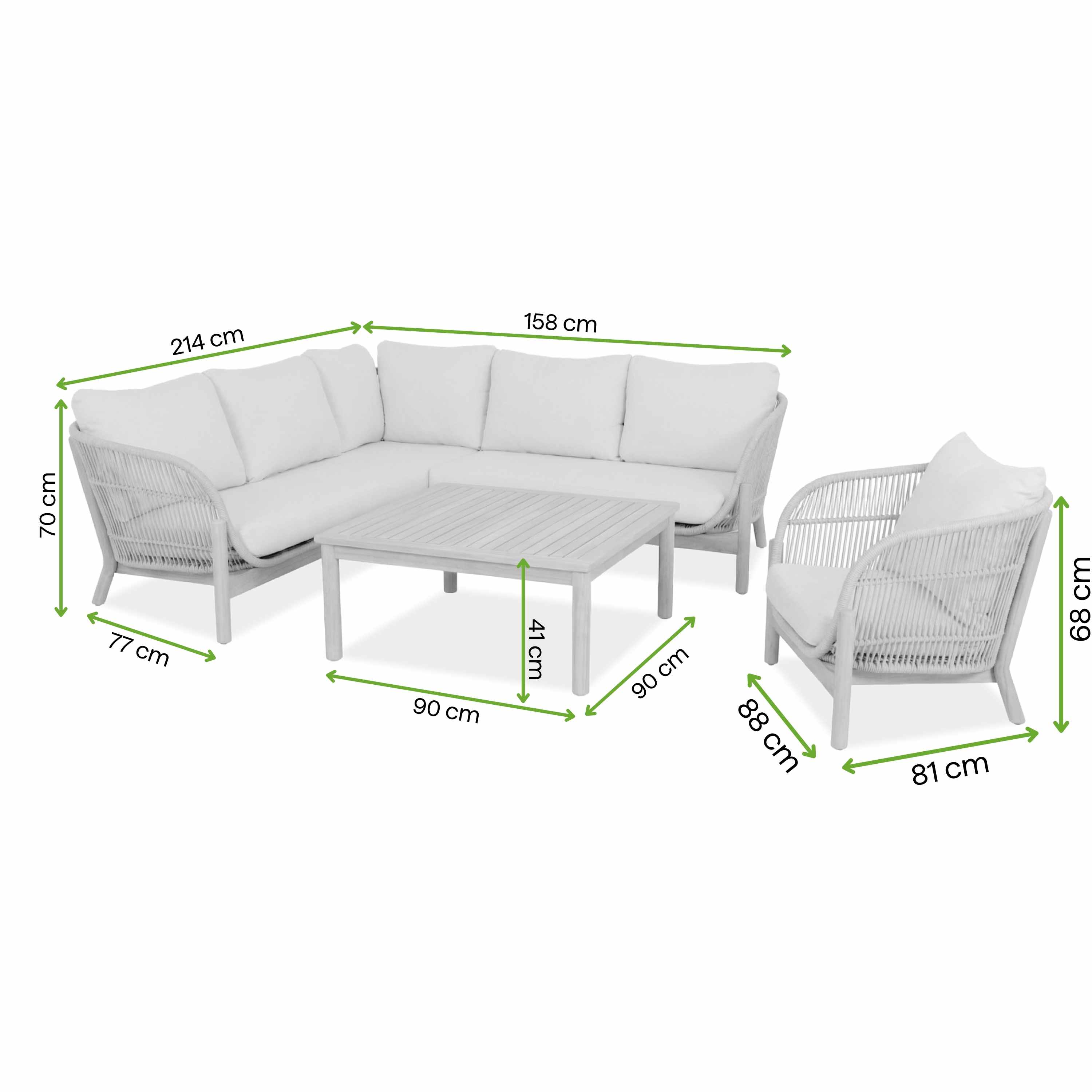 Przestrzeń dla wielu osób: Duży narożnik umożliwia wygodny wypoczynek w większym gronie. Idealnie sprawdzi się podczas spotkań na świeżym powietrzu.