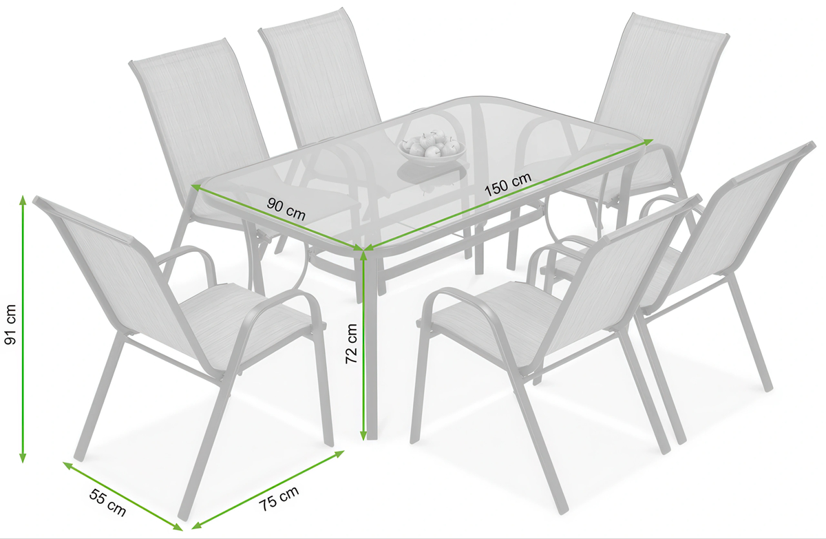 Przekształć swój taras z kompletem ogrodowym BOLOGNA 150/6 Black – Bjørkka! Ten elegancki zestaw mebli ogrodowych dla 6 osób łączy nowoczesny design z niezrównaną trwałością. Solidna, malowana proszkowo stal zapewnia stabilność. Sześć komfortowych krzeseł ogrodowych z innowacyjnego Textilene jest odpornych na UV i nie wymaga poduszek. Stół z blatem z hartowanego szkła to luksus i łatwość w czyszczeniu, z praktycznym otworem na parasol. Sztaplowane krzesła umożliwiają łatwe przechowywanie. Idealne meble na balkon lub do ogrodu. Wybierz jakość i styl i kup ten zestaw mebli do ogrodu już dzis!