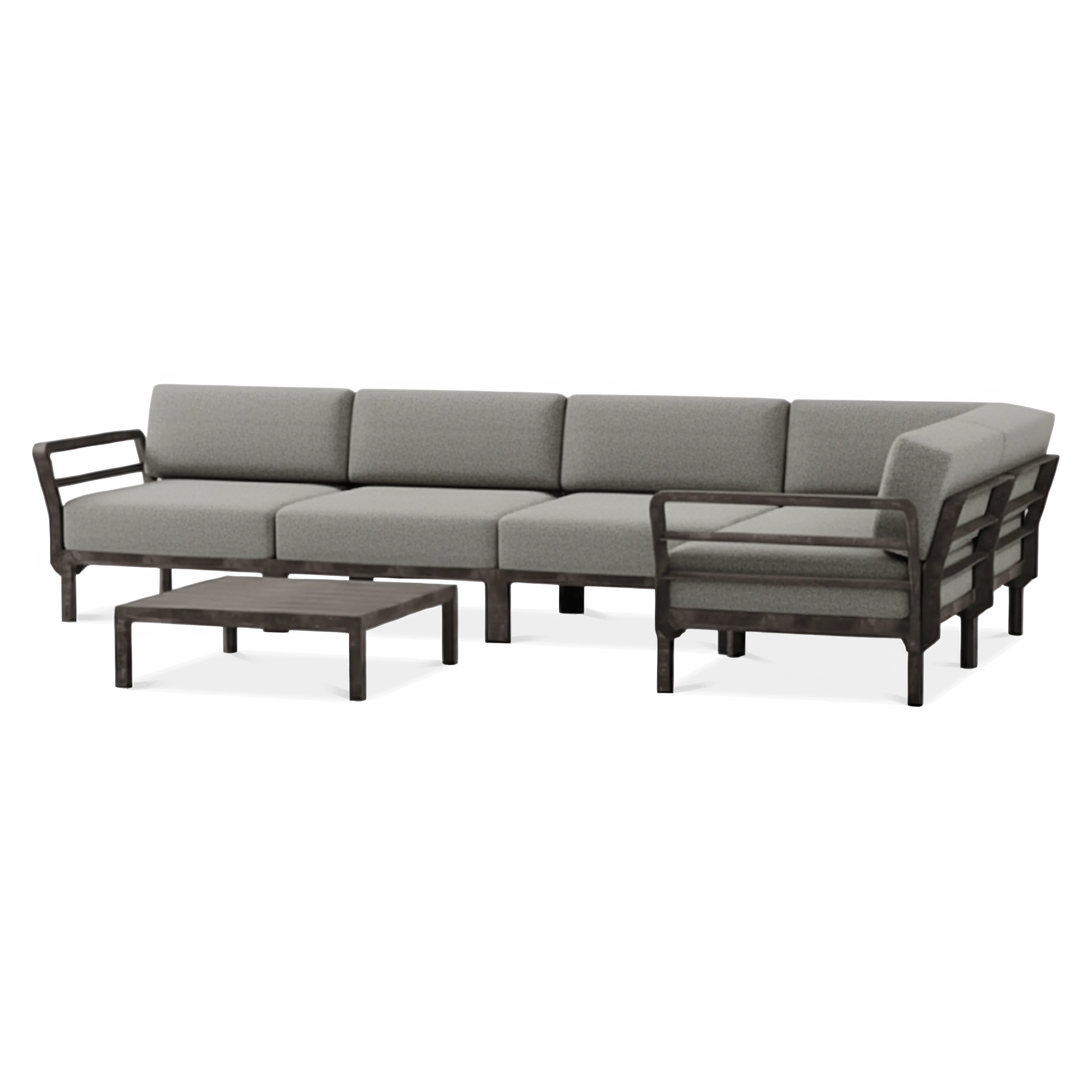 Zestaw ogrodowy MAXIMO 5 Terra-Lava marki Nardi to nowoczesna propozycja dla osób, które chcą stworzyć w swojej przestrzeni zewnętrznej komfortową strefę wypoczynkową. Sofa modułowa, składająca się z pięciu siedzisk i ośmiu oparć, pozwala dopasować układ mebli do dostępnego miejsca i własnych potrzeb. Solidna rama z żywicy polipropylenowej z włókna szklanego z dodatkiem UV gwarantuje odporność promienie słoneczne. Poduszki w Sunbrella są wygodne, trwałe i łatwe w czyszczeniu, dzięki czemu narożnik zachowuje świeżość przez długi czas. Do kompletu dołączono stolik MAXIMO w kolorze Terra, który świetnie komponuje się z całością i zapewnia praktyczne miejsce na napoje, książki czy dekoracje. Subtelna kolorystyka Terra-Lava wprowadza do ogrodu nowoczesny charakter i doskonale podkreśla otoczenie pełne zieleni. Zestaw ogrodowy MAXIMO 5 Terra-Lava od Nardi to nowoczesne meble ogrodowe, które podniosą komfort Twojego ogrodu, tarasu lub patio.