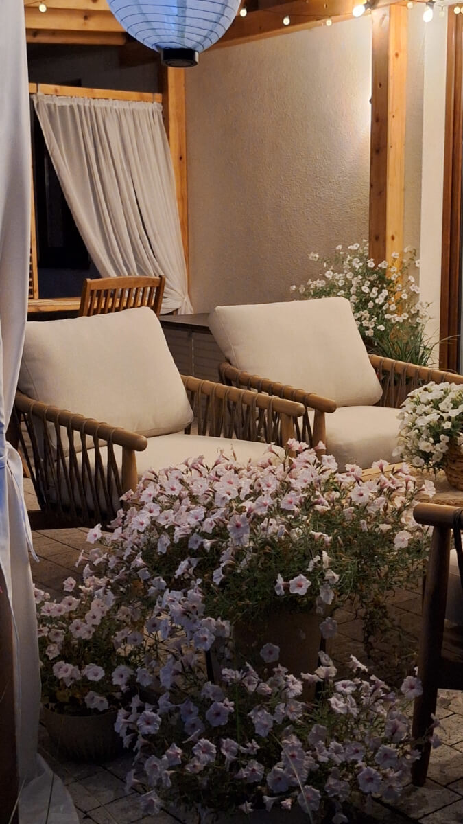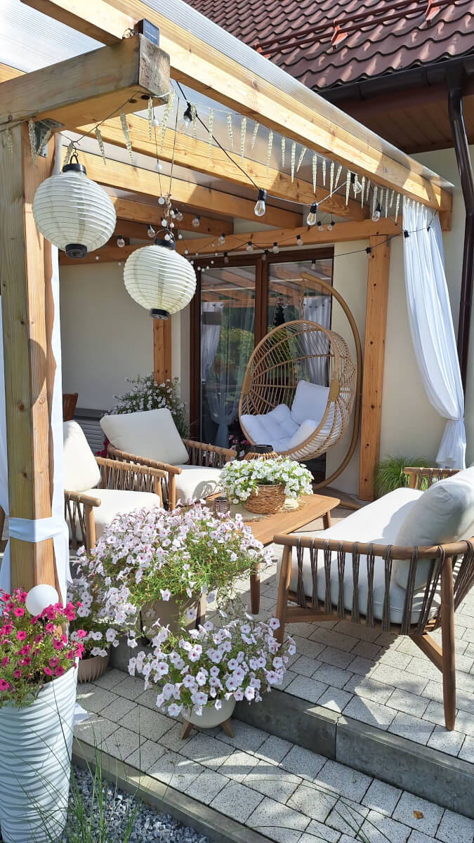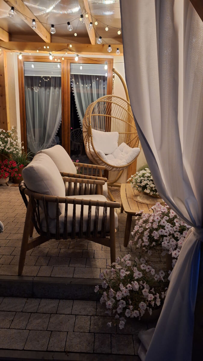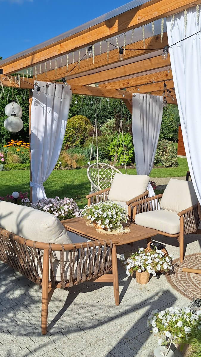 Idealny na letnie wieczory i spotkania - zestaw stwarza przytulną atmosferę do spędzania czasu z rodziną i przyjaciółmi w ogrodzie lub na tarasie
