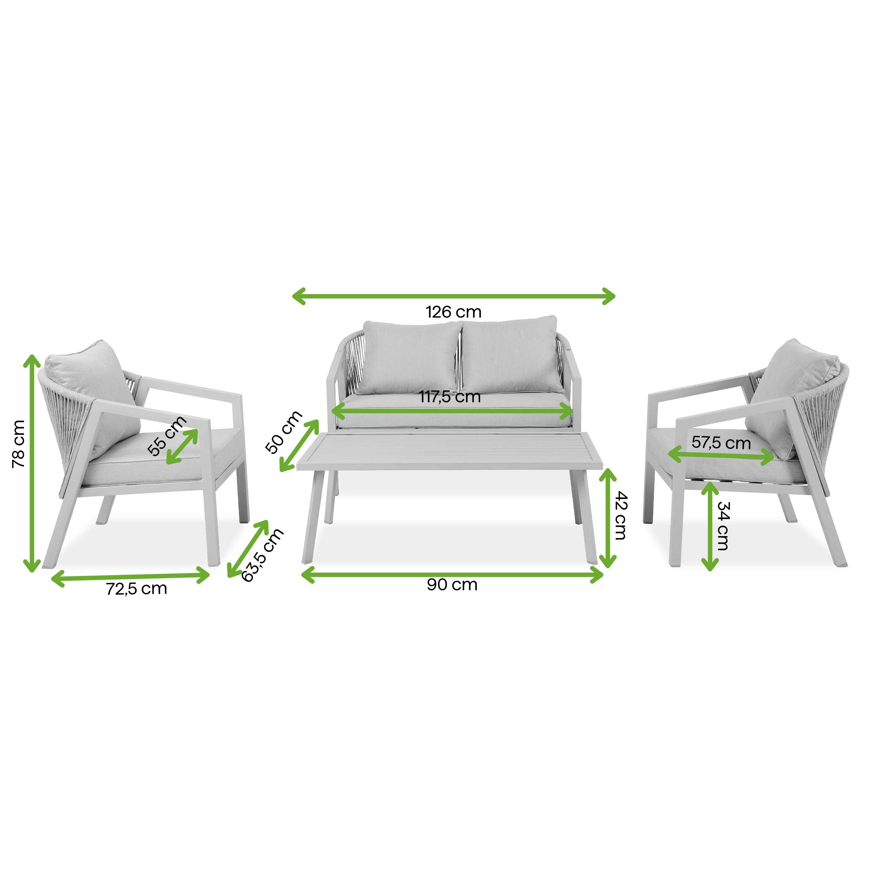 Solidny udźwig: Wytrzymałość 120 kg na fotel oraz 110 kg na miejsce w sofie świadczy o bezpieczeństwie całej konstrukcji.
