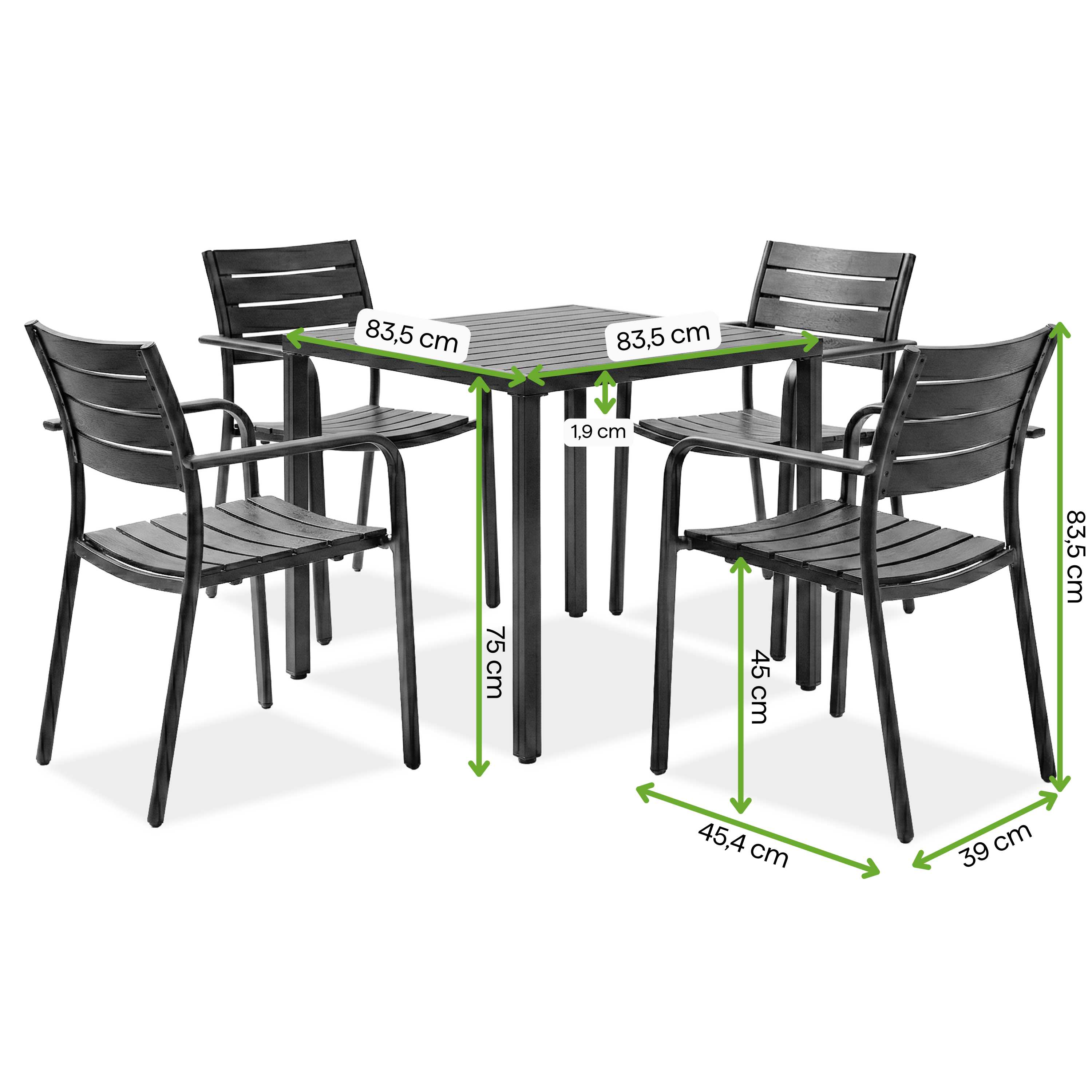Zestaw tarasowy MILO/BRIS Black Beige – Bjørkka to nowoczesne meble tarasowe łączące trwałość, funkcjonalność i estetykę, przeznaczone do użytku prywatnego oraz komercyjnego. Krzesła MILO wykonano z odpornego na UV tworzywa PP, z ergonomicznym siedziskiem oraz metalową konstrukcją malowaną proszkowo; model jest sztaplowany i posiada nośność do 150 kg. Stół BRIS wyposażono w solidny blat oraz metalowe nogi zabezpieczone powłoką elektroforetyczną, przeznaczone do użytkowania na zewnątrz; jego wymiary to 83,5 × 83,5 × 75 cm. Całość uzupełniają antypoślizgowe stopki, a w konstrukcji stołu zastosowano regulowane nakładki umożliwiające stabilne ustawienie na nierównych powierzchniach.